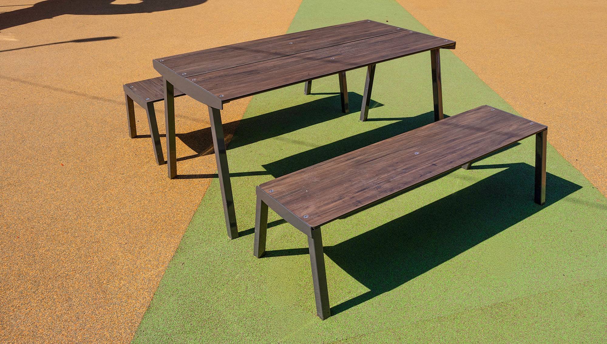 - Színskála: RAL 7022 árnyalatú acélszerkezet, Patina Bronze természetes fa mintázatú HPL
