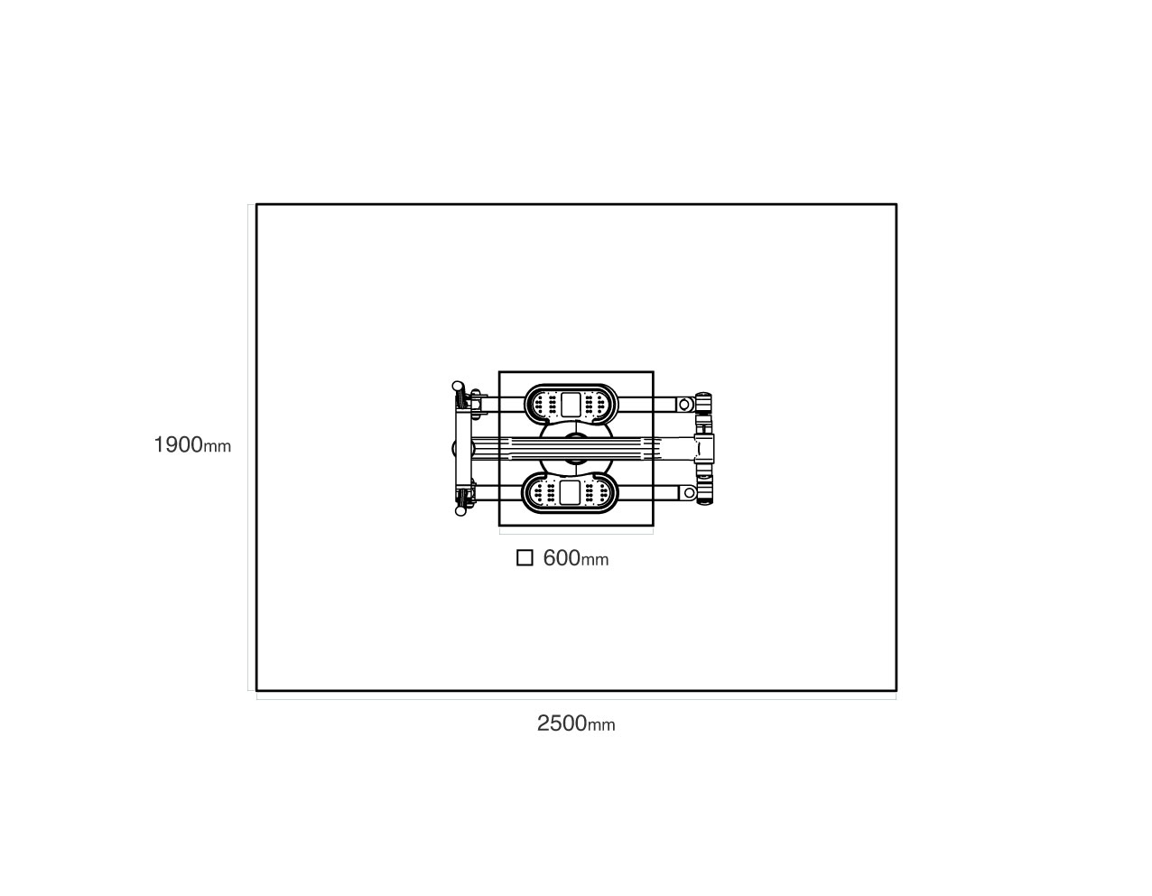 Biztonsági zóna: 1,5 × 1,9 m
