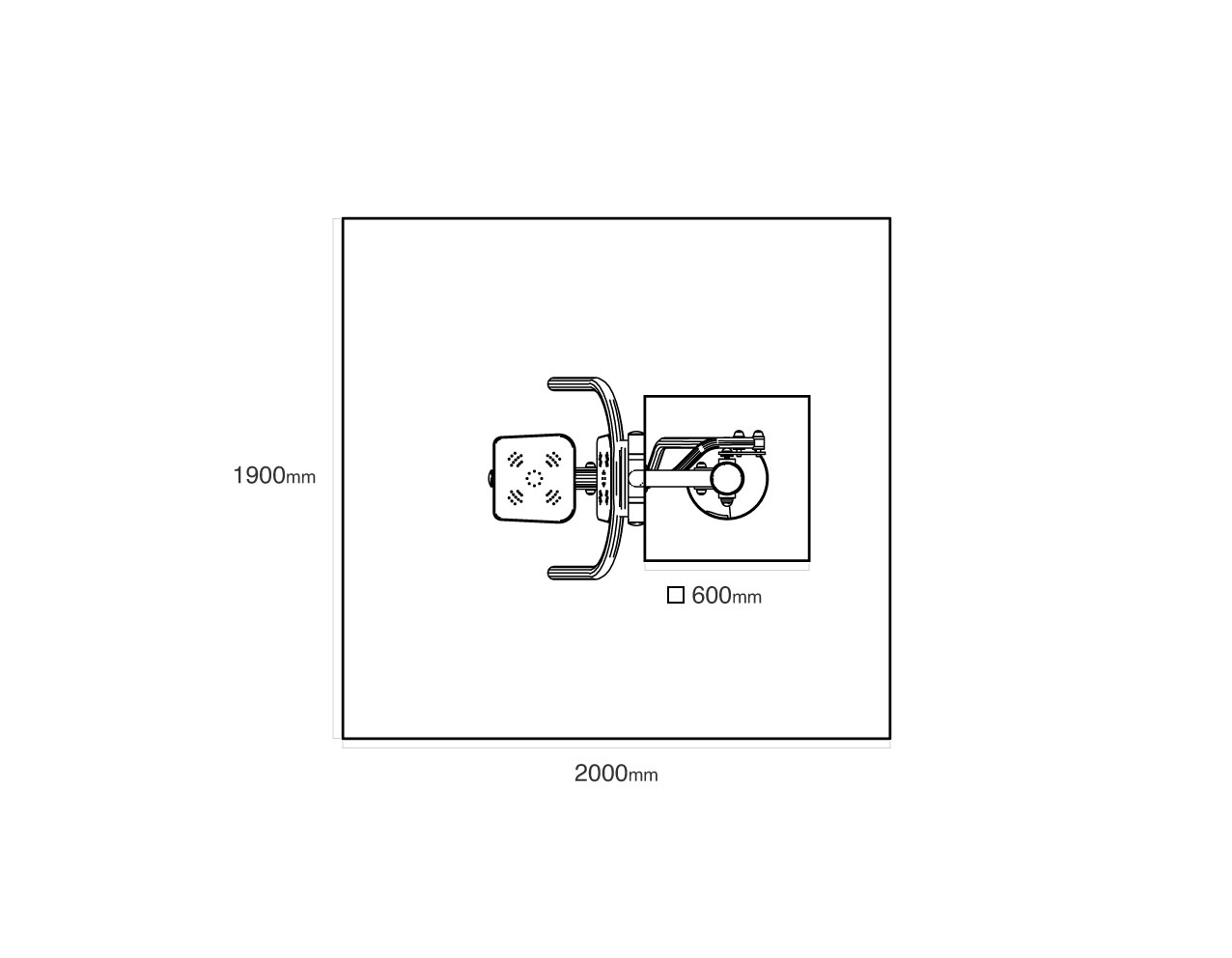 Biztonsági zóna: 1,9 × 2,0 m