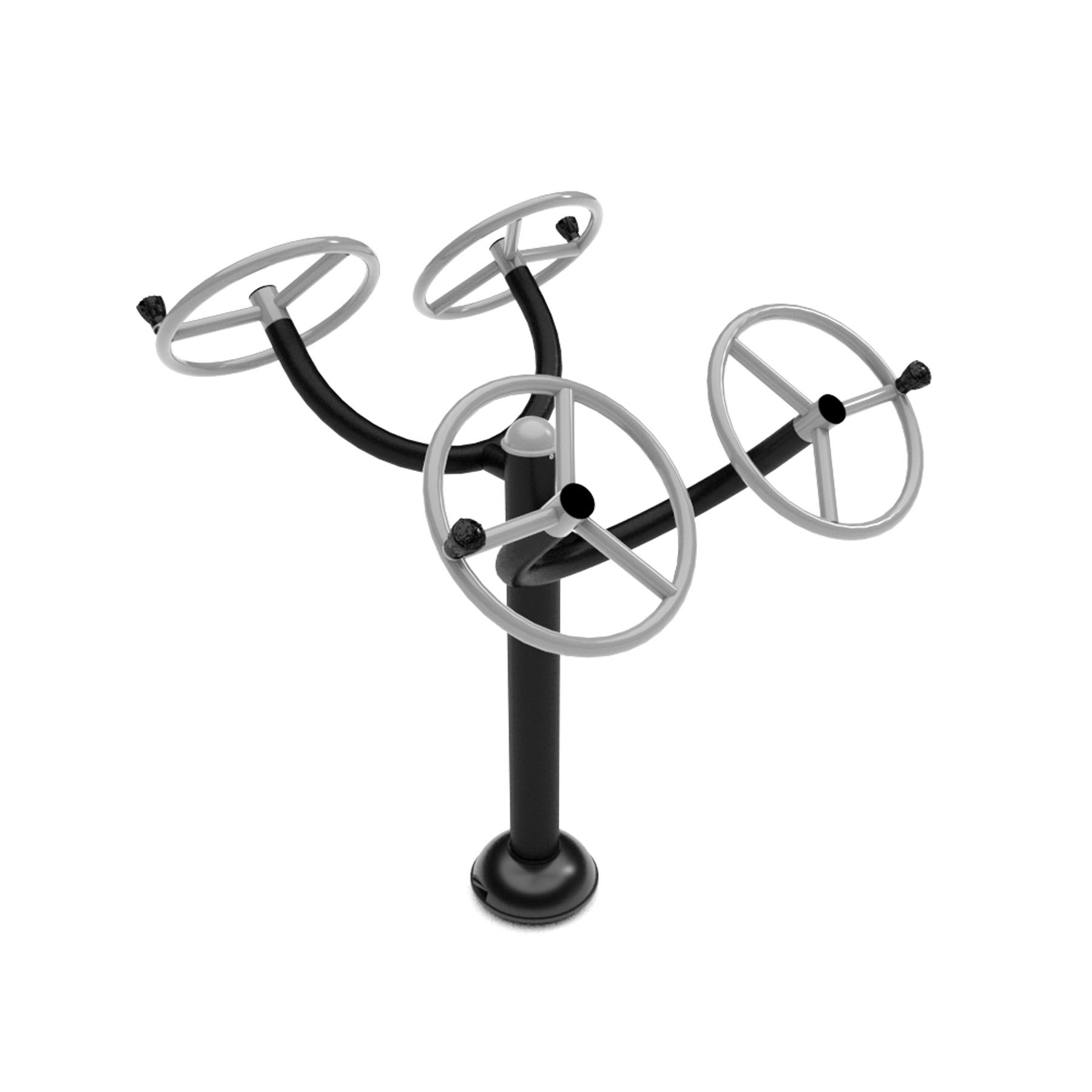 A gyakorlatok elvégzése: Álljon vállszélességben terpeszben, a mellkasát a két kerék közé helyezve. Fogja meg mindkét fogantyút, és forgassa a kerekeket a legmagasabb helyzetbe. Egyidejűleg forgassa el a bal kereket az óramutató járásával ellentétes irányba, a jobb kereket pedig az óramutató járásával megegyező irányba. A gyakorlat hatékonyságának javítása érdekében váltsa a forgásirányokat. Végezzen sima és kontrollált mozdulatokat. Fokozatosan növeld az ismétlések számát, ahogy az erőnléted javul.