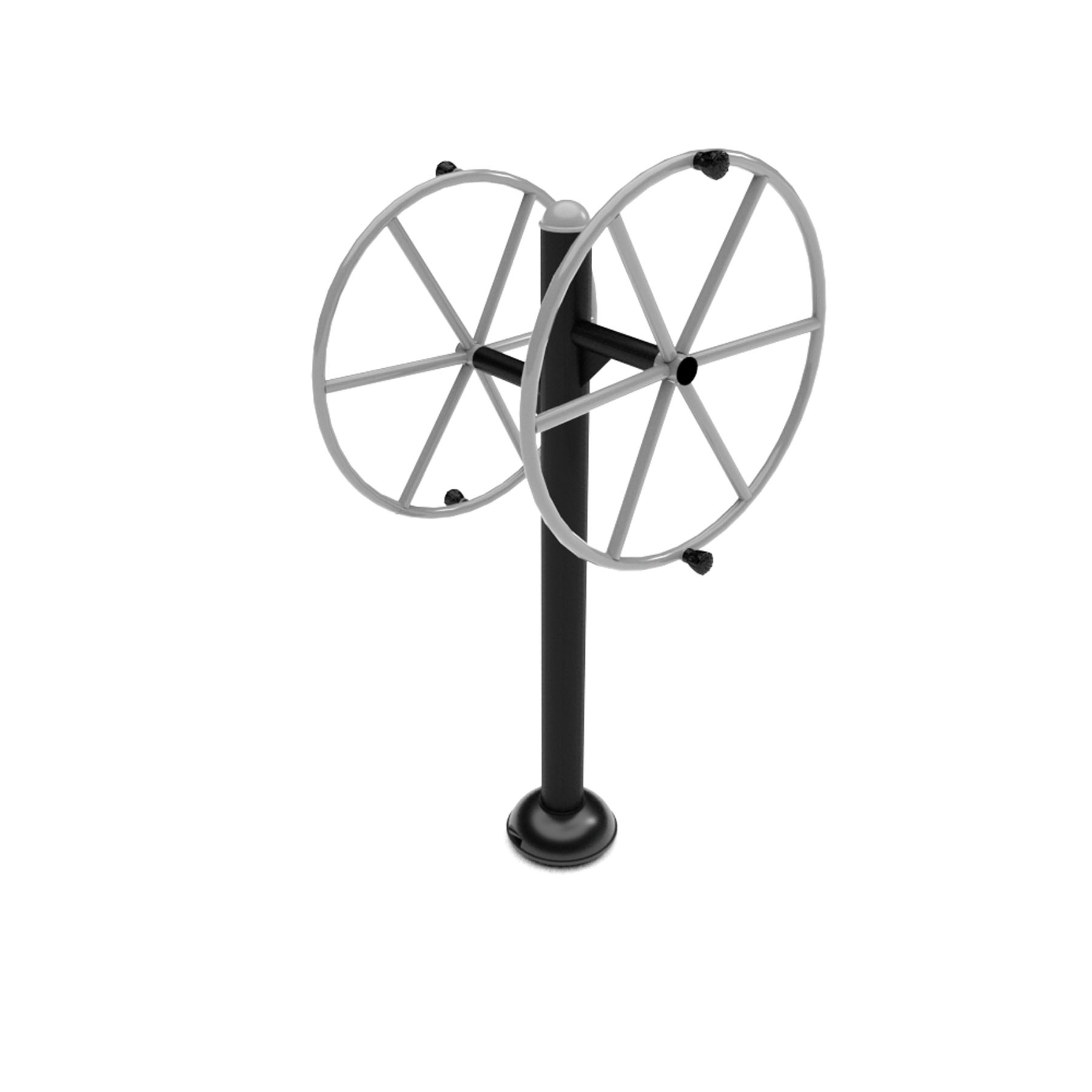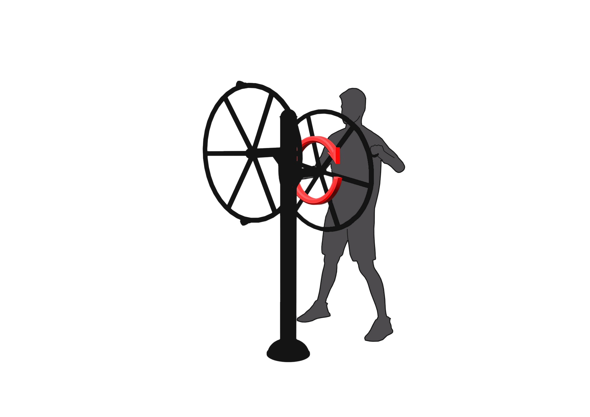 A gyakorlat elvégzése: Álljon a kerékkel szemben, teste a készülék felé nézzen. Fogja meg mindkét fogantyút mindkét kezével. Egyidejűleg forgassa a kerekeket az óramutató járásával megegyező vagy azzal ellentétes irányba. A gyakorlat hatékonyságának fokozása érdekében váltsa a forgásirányt. Végezzen sima és kontrollált mozdulatokat. Fokozatosan növeld az ismétlések számát, ahogy az erőnléted javul.