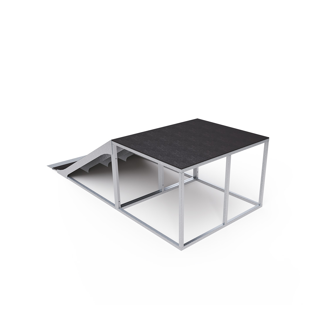 A gördeszkázás, görkorcsolyázás és rollerezés nagyon kedvelt szabadidős forma a fiatalok körében. Egyesek számára ez a sport még életstílussá is válik. Az 1 m magasságból induló rámpa tartó szerkezete tűzihorganyzással kezelt acélból, lapja pedig vízálló rétegelt lemezből készül. A tűzihorganyzásnak köszönhetően az acélszerkezet ellenáll az időjárás viszontagságainak. A kötőelemek rozsdamentes acélból készülnek.