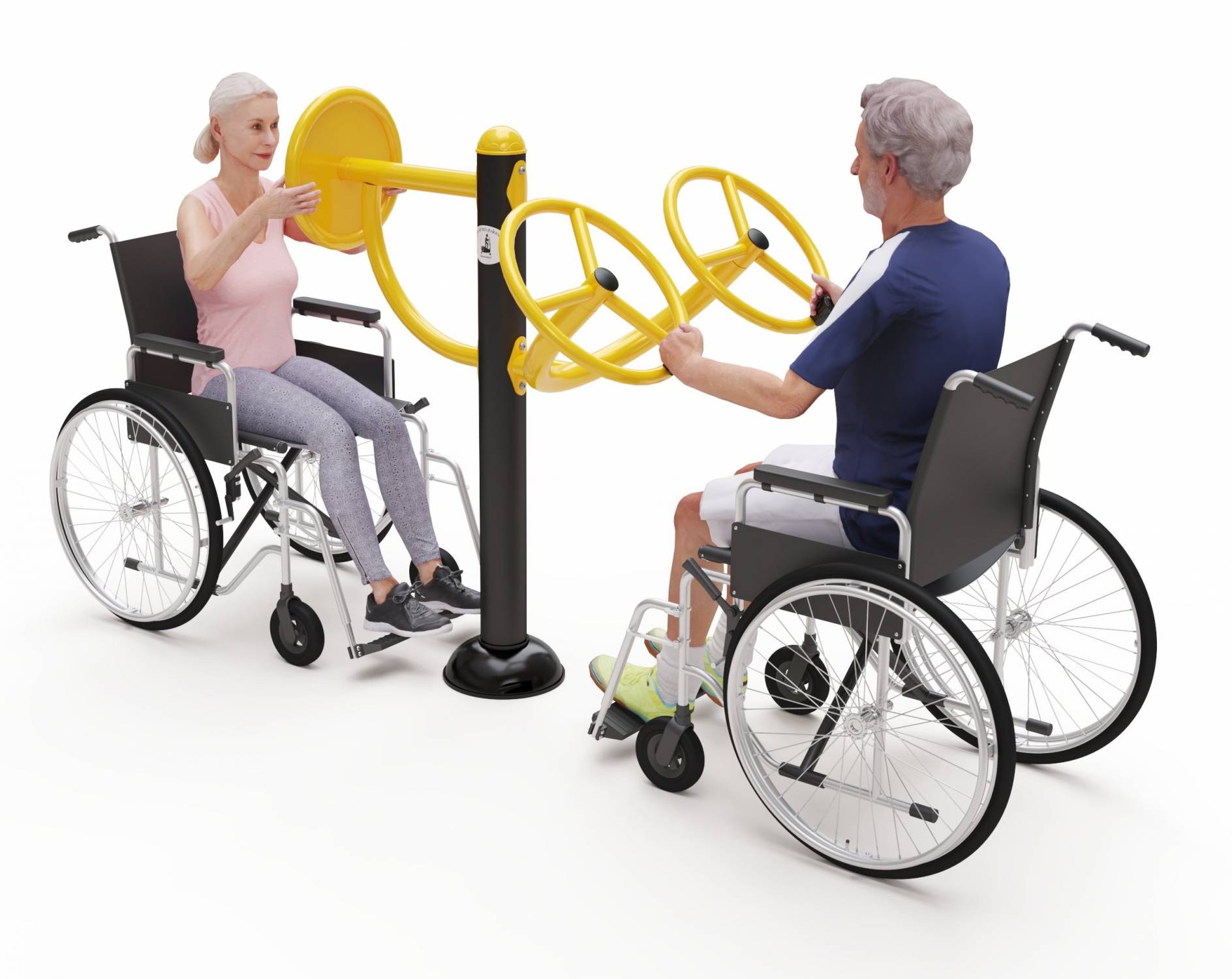 HF13 kültéri fitneszgép mozgássérültek részére - a felső végtagok és a mell tornáztatására szolgál. A gép elhelyezéséhez szükséges minimális területnek 4450 x 3750 mm-nek kell lennie.