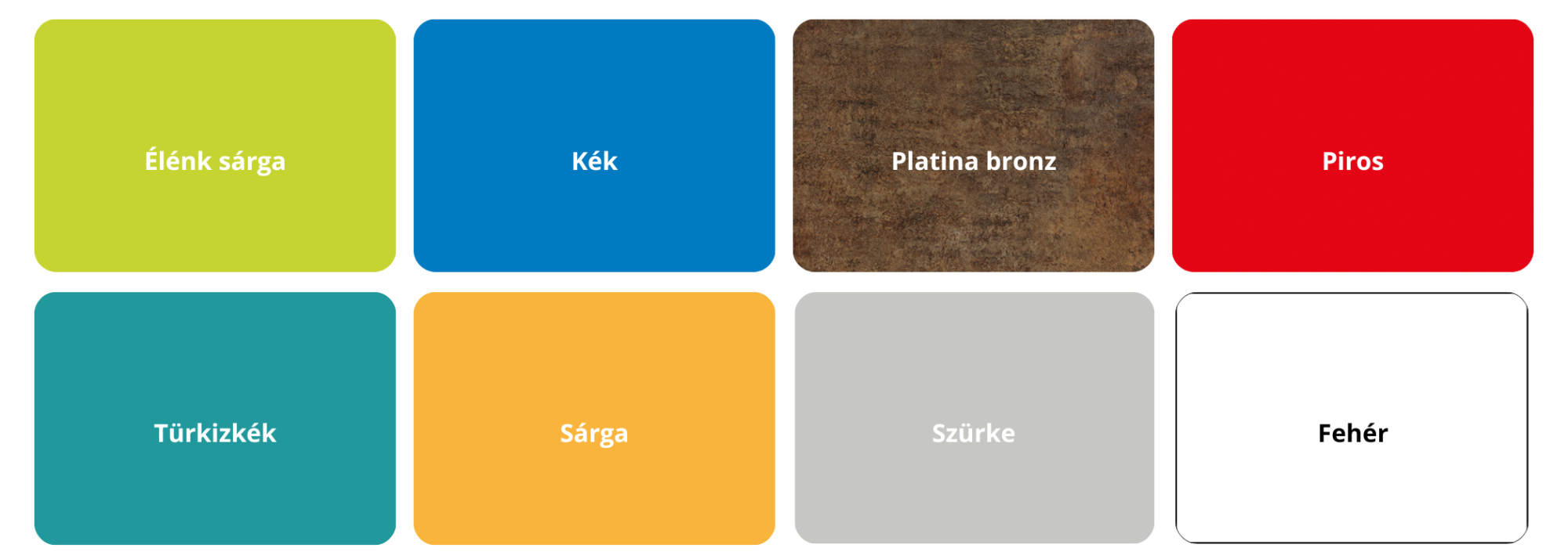 A kínálatunkban szereplő színek: