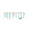 A modern kialakítás különféle elemeket ötvöz, amelyek serkentik a gyermekek erejét, egyensúlyát, koordinációját és állóképességét, miközben szórakozást és kihívást kínálnak számukra a különböző korosztályok számára.