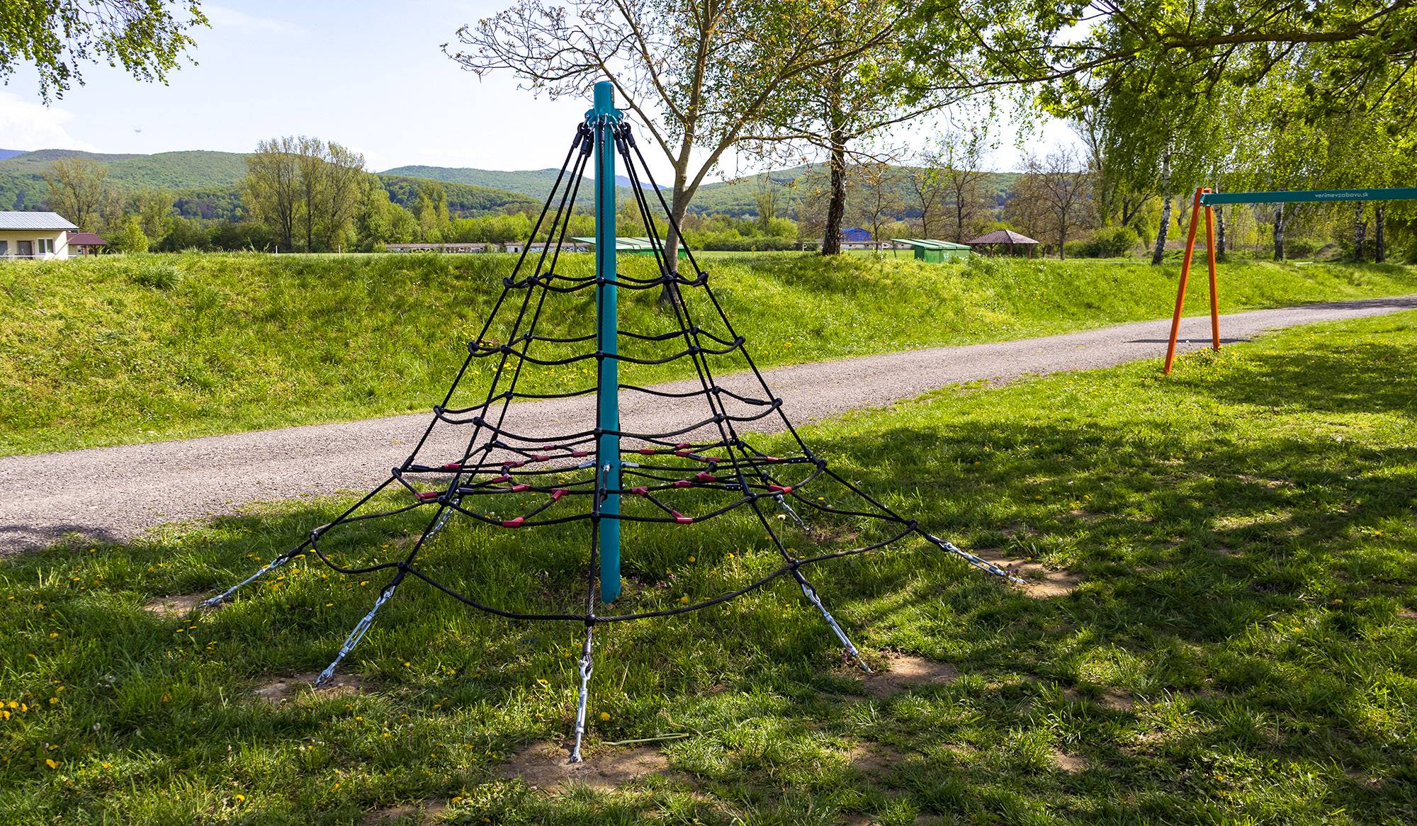 Egy ilyen szerkezet, amely egy hosszú rúdból, atlétikai gyűrűkből, egy egyensúlyozó lapokkal ellátott kötélből, egy kötélmászó hálóból, egy létrából és egy dupla trapézból áll, különösen népszerű a nyilvános játszótereken és az iskolai kampuszon, ahol a gyerekek aktív időt tölthetnek a szabadban.