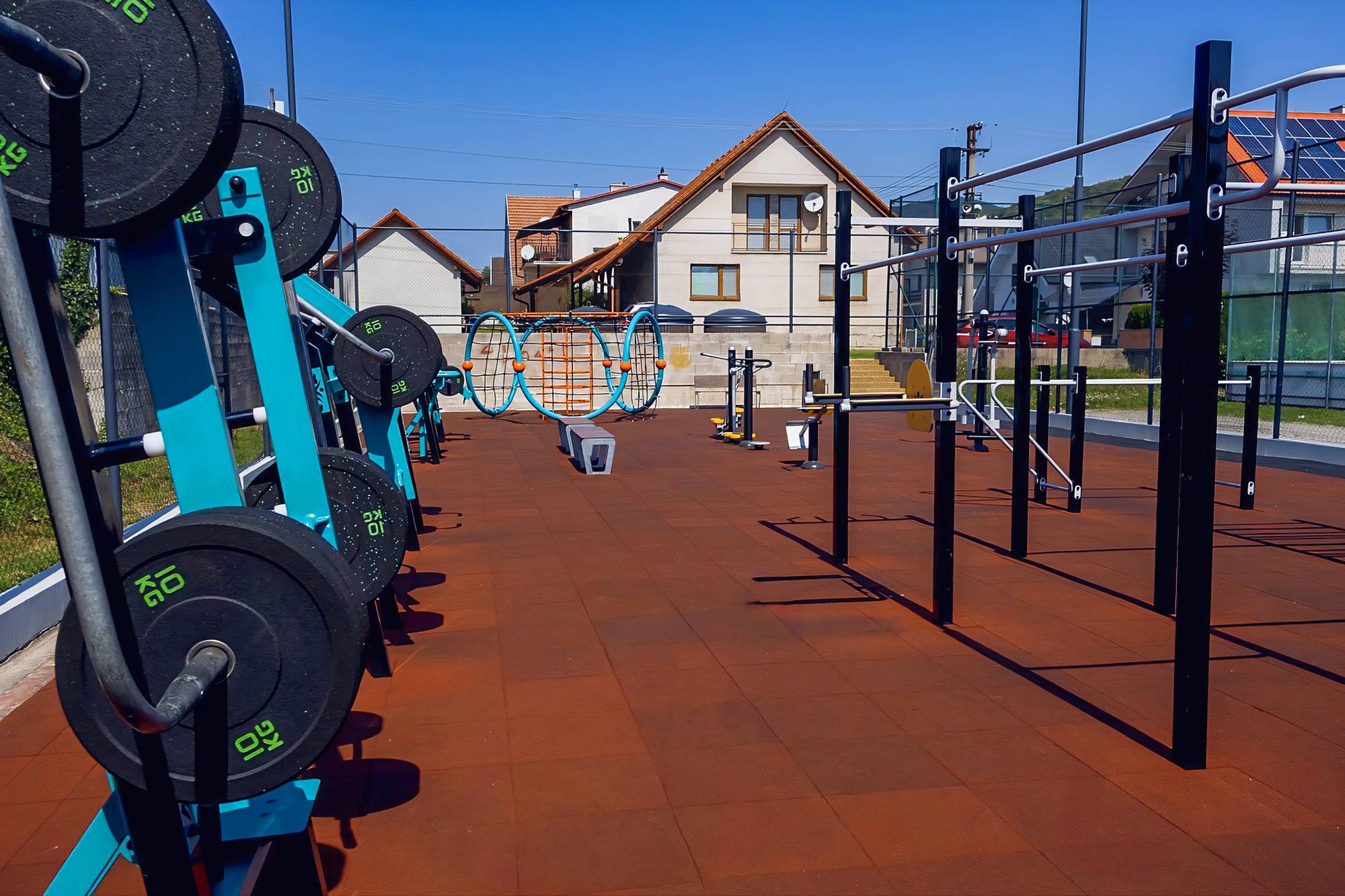Ennek az edzőpályának a jelentős előnye a súlyzós kültéri fitneszelemek jelenléte, amelyek lehetővé teszik a fitneszközpontokhoz hasonló erőnléti edzést, csak a szabadban. Mozgótárcsás gépeinket úgy terveztük, hogy természetes módon másolják a test mozgását, és olyan nagy izomcsoportokat is megmozgassanak, mint a lábak, a hát, a mellkas és a vállak. Ez a klasszikus erőnléti edzés és a funkcionális kültéri testmozgás elemeinek kombinációját hozza létre.