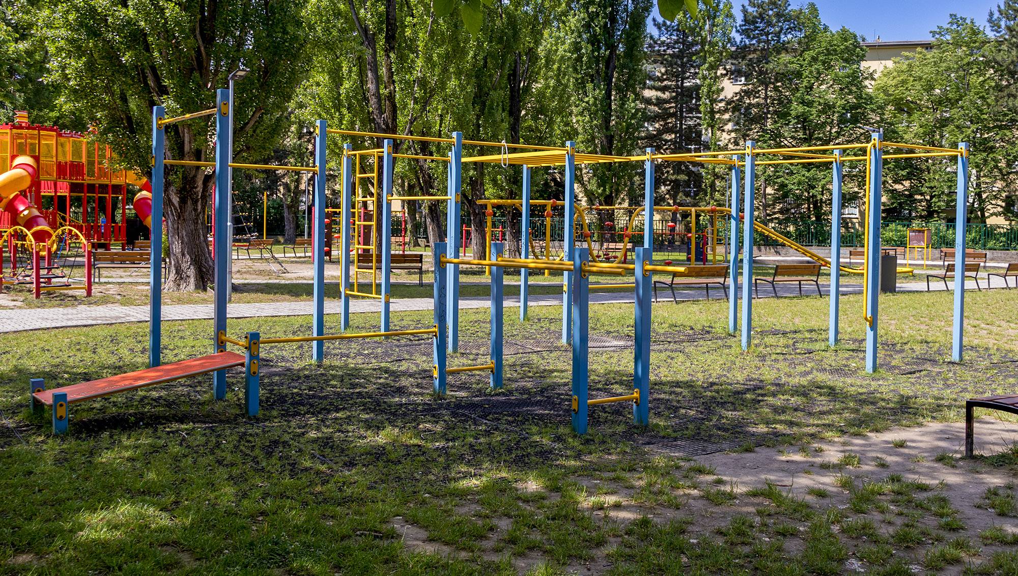 A játszótér nemcsak a gyerekeknek kínál szórakozást, hanem a felnőtteknek is aktív kikapcsolódást. Itt könnyedén mozoghat, miközben gyermeke a mászófalakon kergeti magát. Vagy bemelegíthet itt, és lefuthat 700 métert az utcán a Štrkovecké-tóhoz, ahol néhány hét múlva felújítják a tó körüli tartanpályát - közel egy kilométer hosszút.