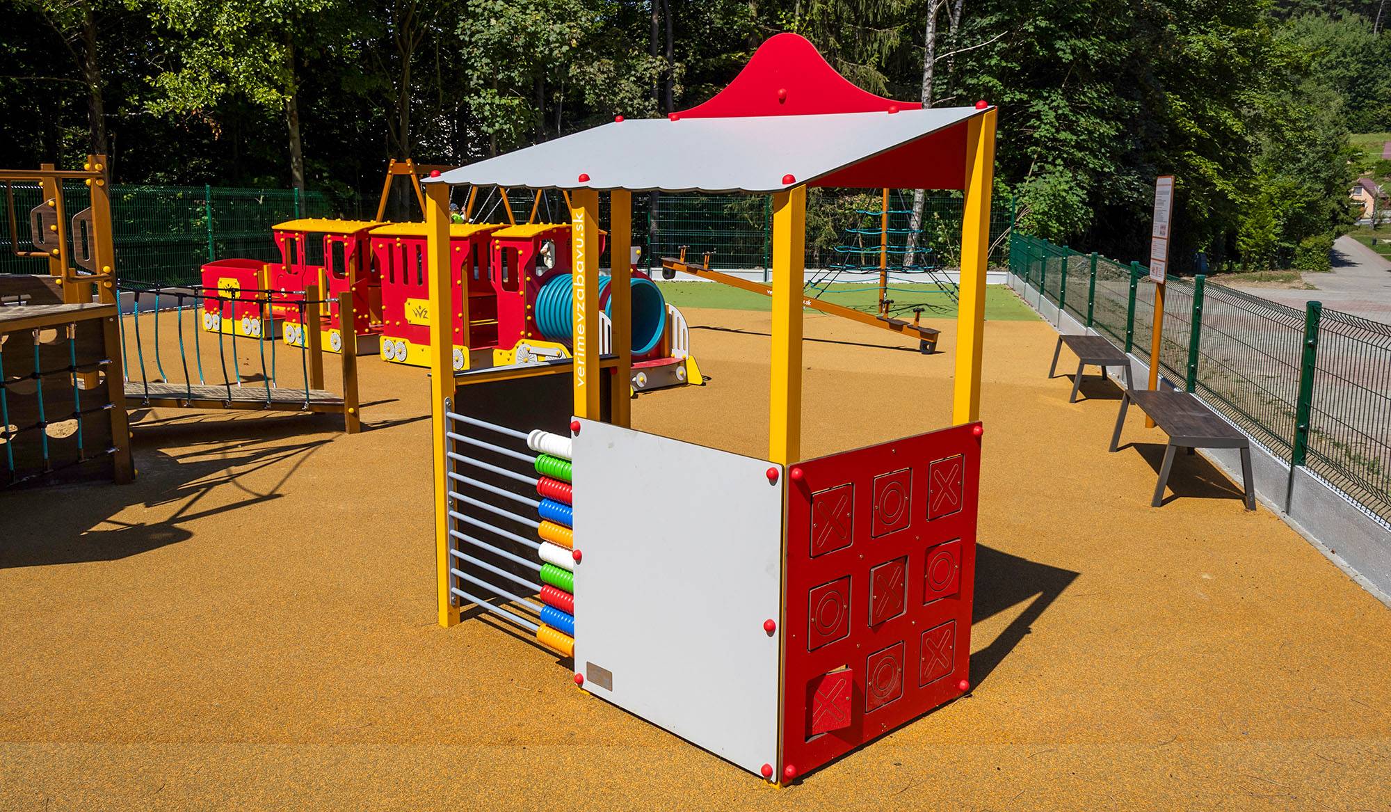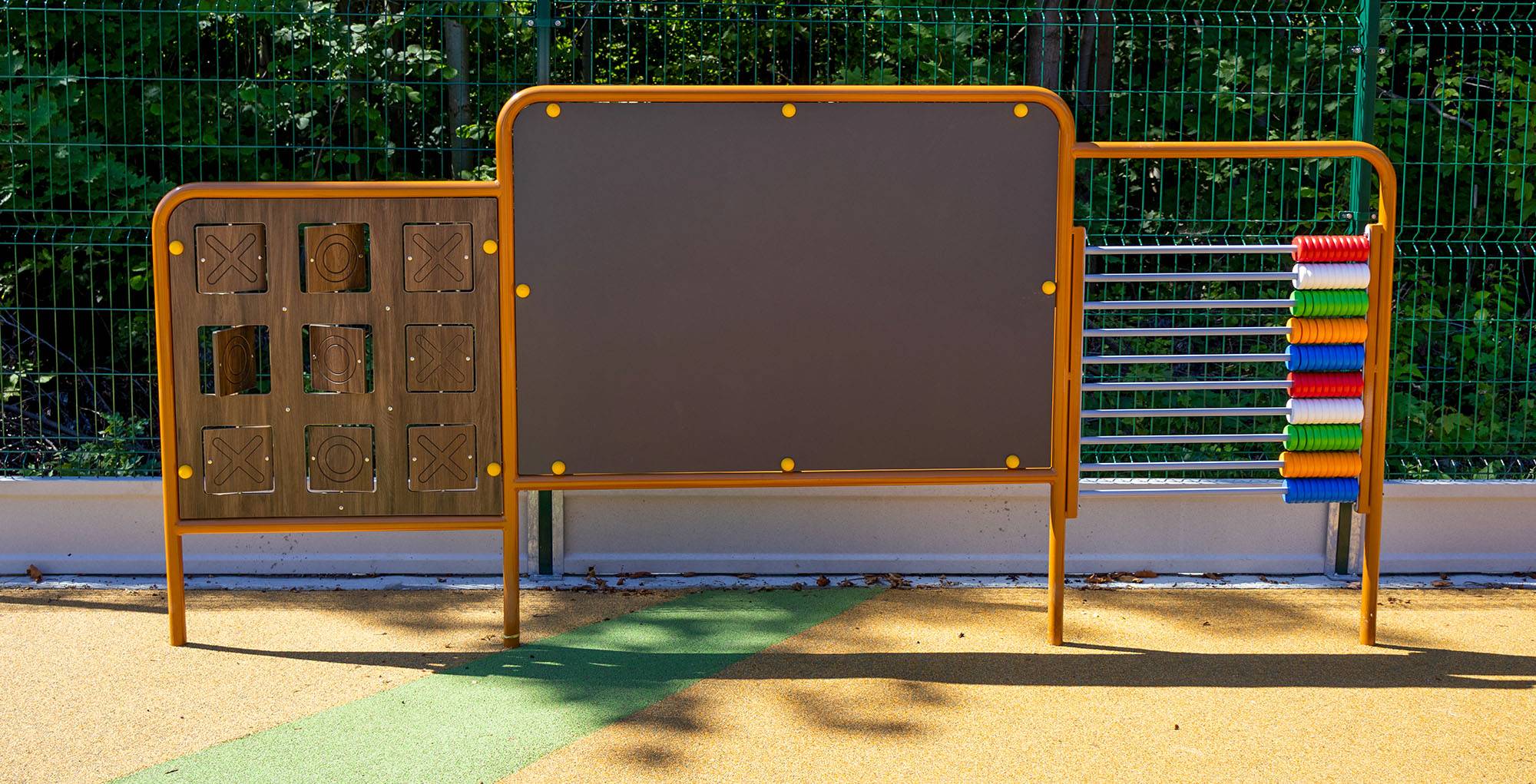 A játszótér oktató részét interaktív panelek - amőba, nagy rajztábla, abakusz, ábécé és számok - alkotják, amelyek fejlesztik a kreativitást és a logikus gondolkodást.