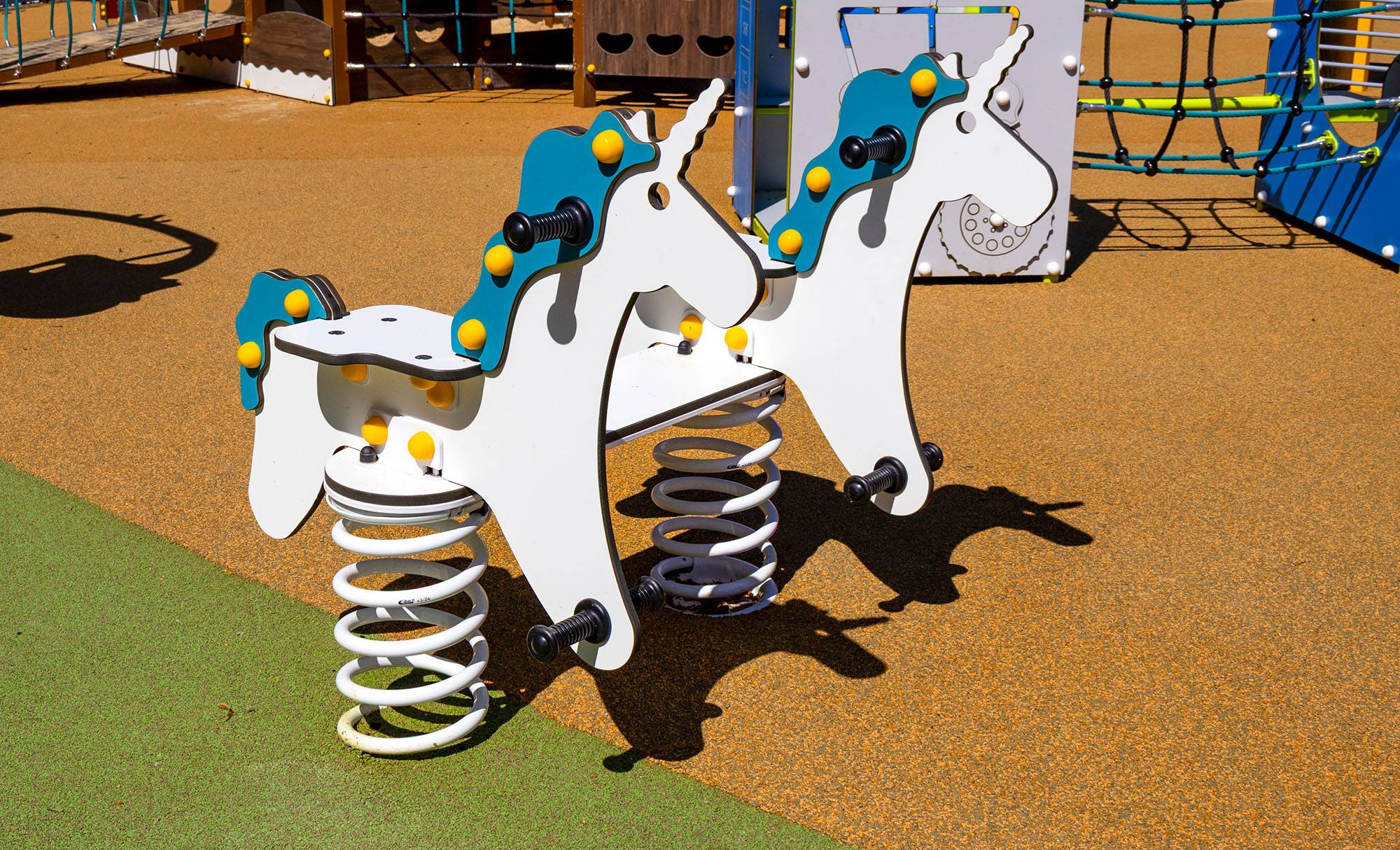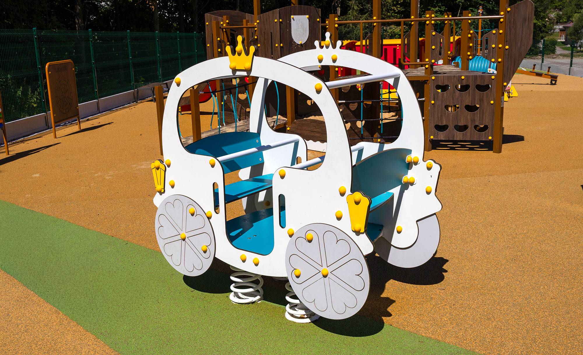 A kisebb gyermekek számára egy hercegnős hintóból és egyszarvúakból, egy rendőrautóból, egy utánfutós traktorból vagy egy kocsikkal ellátott mozdonyból álló rugós hintát készítettünk elő - ezek az elemek támogatják a képzeletet és a játékot hercegnőkként és hercegekként, rendőrökként, gazdálkodókként vagy kis utazókként.