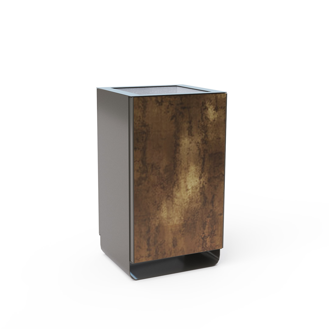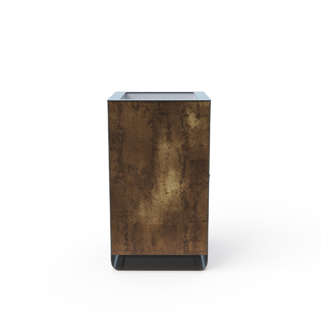 - Színskála: RAL 7022 árnyalatú acélszerkezet, Patina Bronze természetes fa mintázatú HPL
