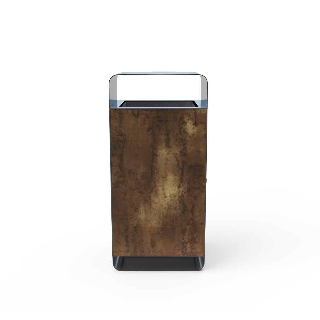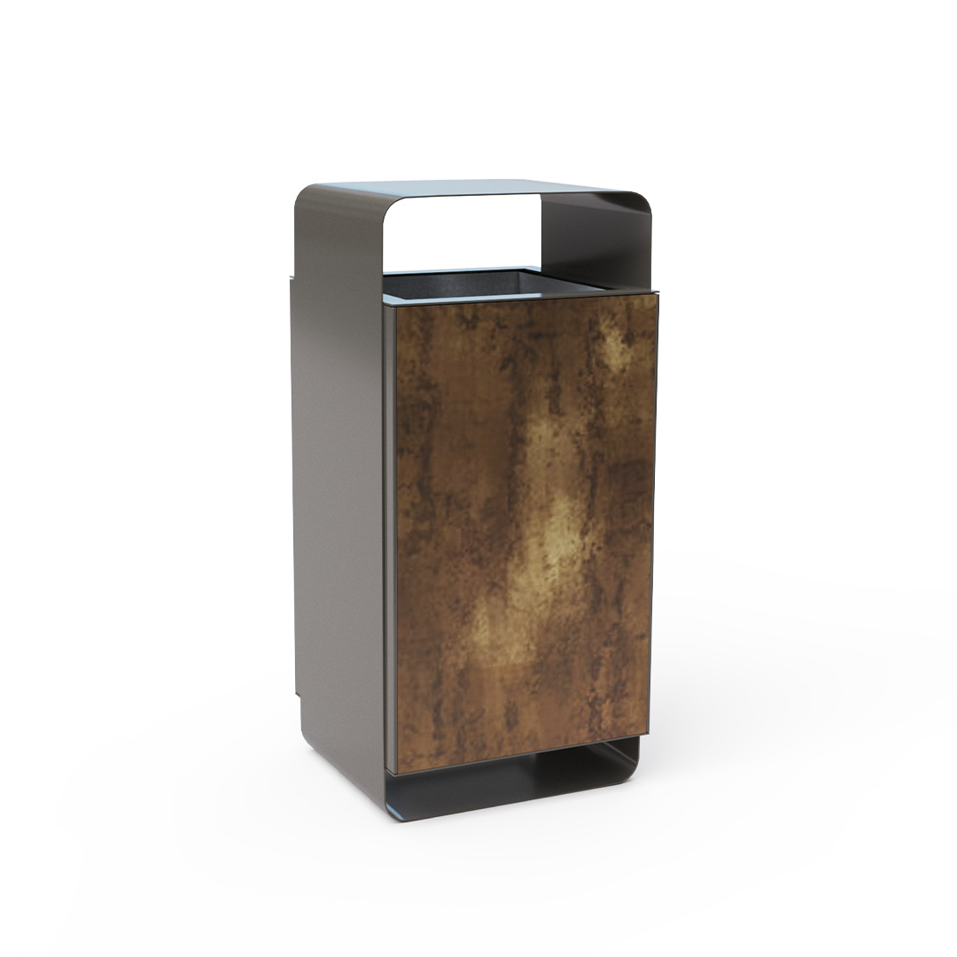- Színskála: RAL 7022 árnyalatú acélszerkezet, Patina Bronze természetes fa mintázatú HPL