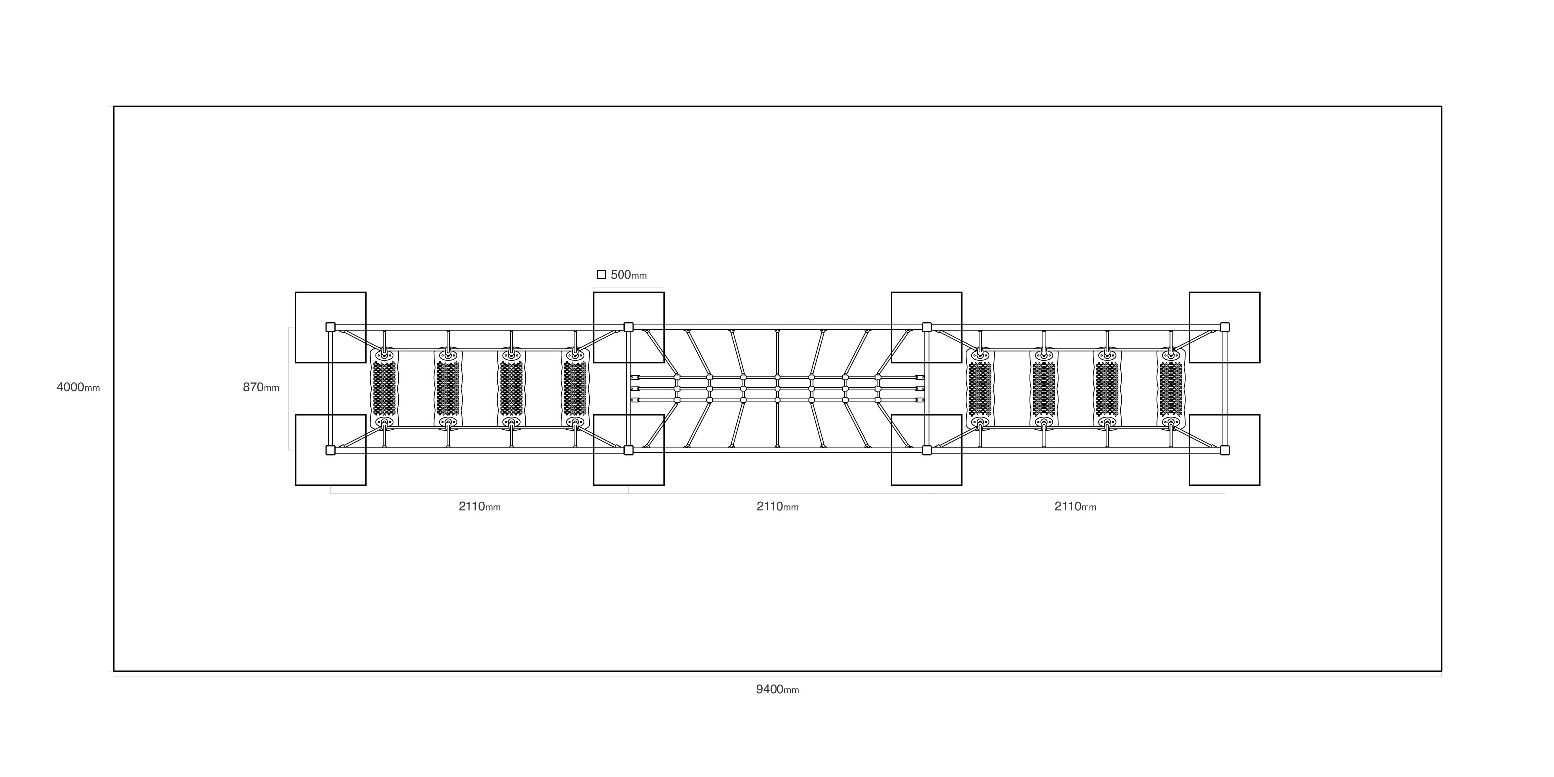 - Használt anyagok: acél szerkezet horgany és KOMAXIT égetett porfesték felületkezeléssel, acélmagos poliészter kötél, csúszásmentes HPL magas nyomású laminált kompaktlemez, rozsdamentes acél kötőelemek