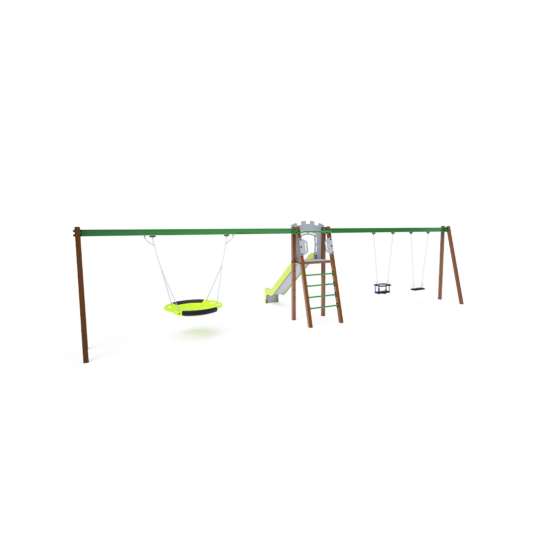 - Ajánlott életkor: babaülőke esetében 2-14 év, laphinta ülőke, fészekhinta kosár és a csúszda esetében 3-14 év