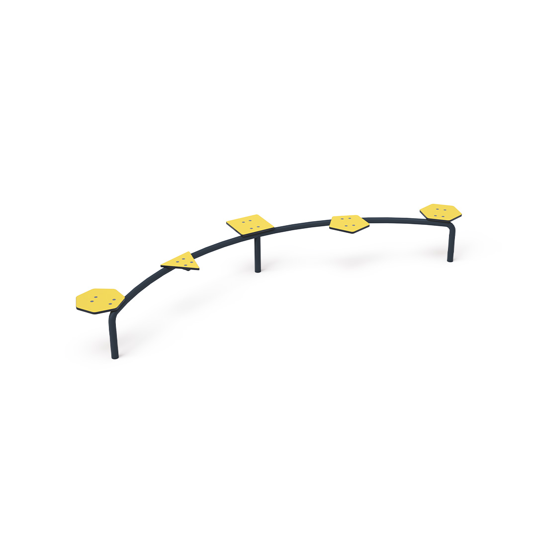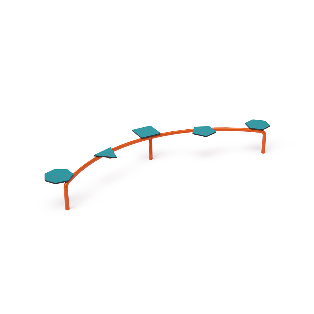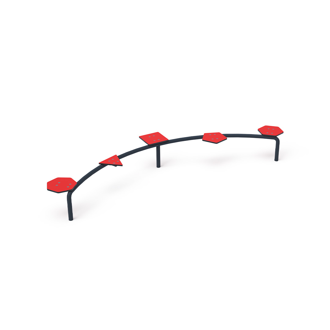 A karbantartásmentes tripla egyensúlyozó gerenda egy olyan játékelem, amely lehetővé teszi a gyermekek számára, hogy eddzék a kondíciójukat és egyensúlyukat. Horganyzott acélból készül, amely porszórtan égetett festékkel van bevonva. A járófelület anyaga csúszásmentes rétegelt lemez. A kötőelemek rozsdamentes acélból készülnek. Ütközési felületként maga a füves felület is használható, mi azonban gyepszőnyeg használatát javasoljuk helyette.