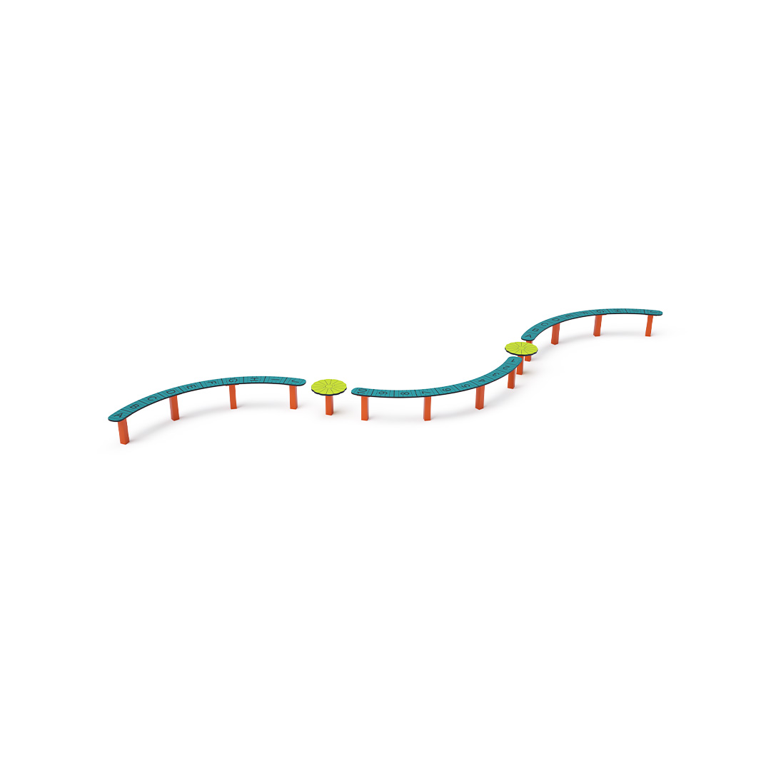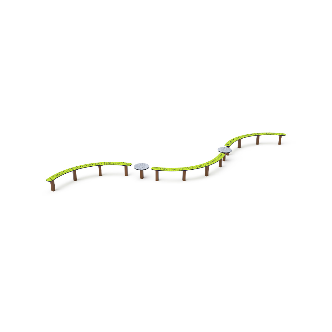 A karbantartást nem igénylő, egyensúlyozórudas játékelem egy olyan elem, amely lehetővé teszi a gyermekek számára, hogy eddzék az erejüket, a kondíciójukat és ügyességüket. Minden korlát különböző magasságú, hogy a nagyobb és kisebb gyerekek egyaránt használhassák. Horganyzott acélból készül, amely porszórtan égetett festékkel van bevonva. A kötőelemek anyaga rozsdamentes acél és a tartósság, valamint a biztonság növelése érdekében fedelek védik őket. Füves felület ugyan használható ütközési felületként, mi azonban a gyepszőnyeget javasoljuk inkább.