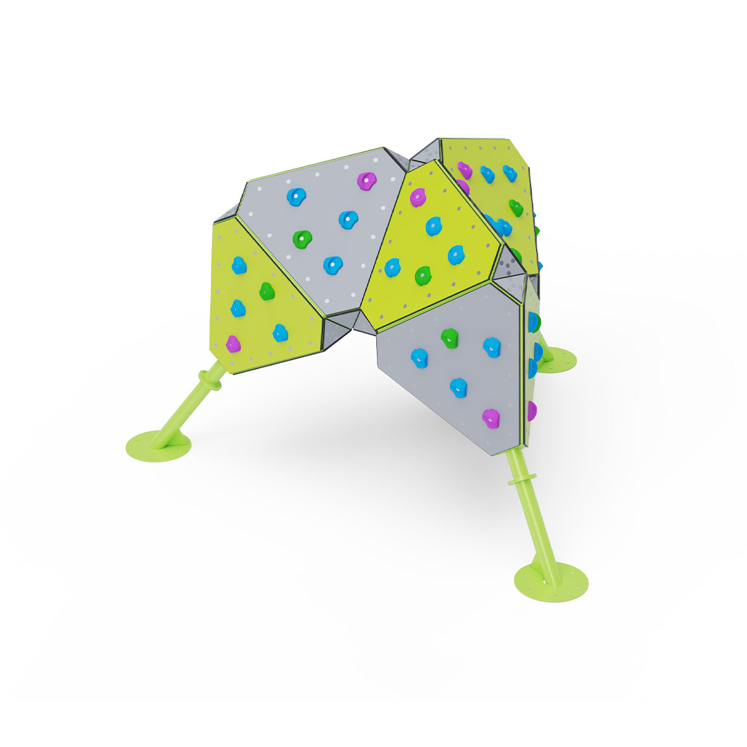 A gyermekek részére gyártott, közepes méretű bouldering tartó szerkezete horganyzott és porszórt acélból, lapjai HPL jelölésű magas nyomású laminált kompaktlemezből és a mászókövek pedig poliészter gyantából készülnek. A magas nyomású HPL lemez törhetetlen, nem mérgező, újrahasznosítható, továbbá vegyszer- és UV álló. A színes mászókövek különböző útvonalakon helyezkednek el, ahol minden szín egy adott mászóút nehézségi fokát jelöli.