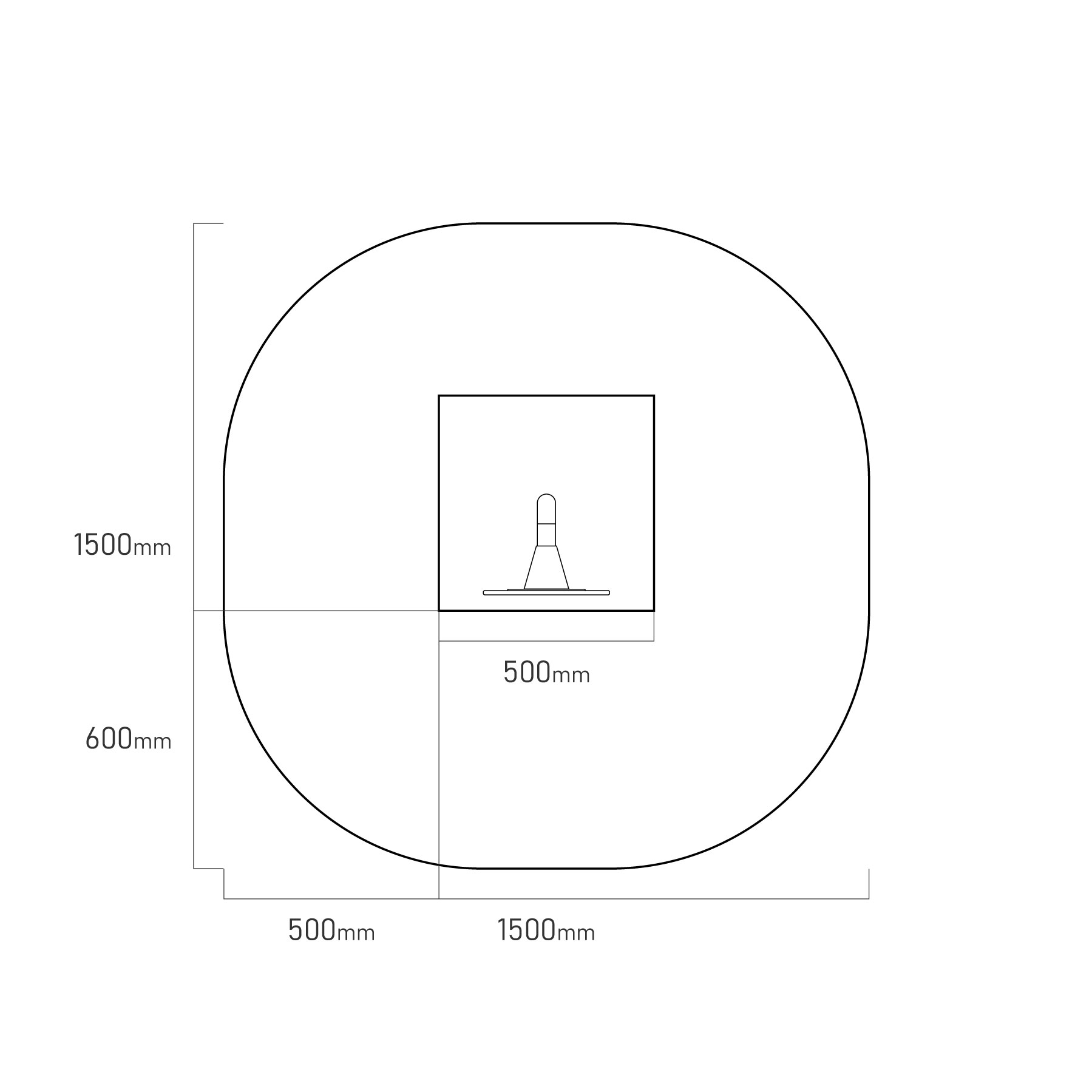 - Biztonsági zóna: 1,5 × 1,5 m