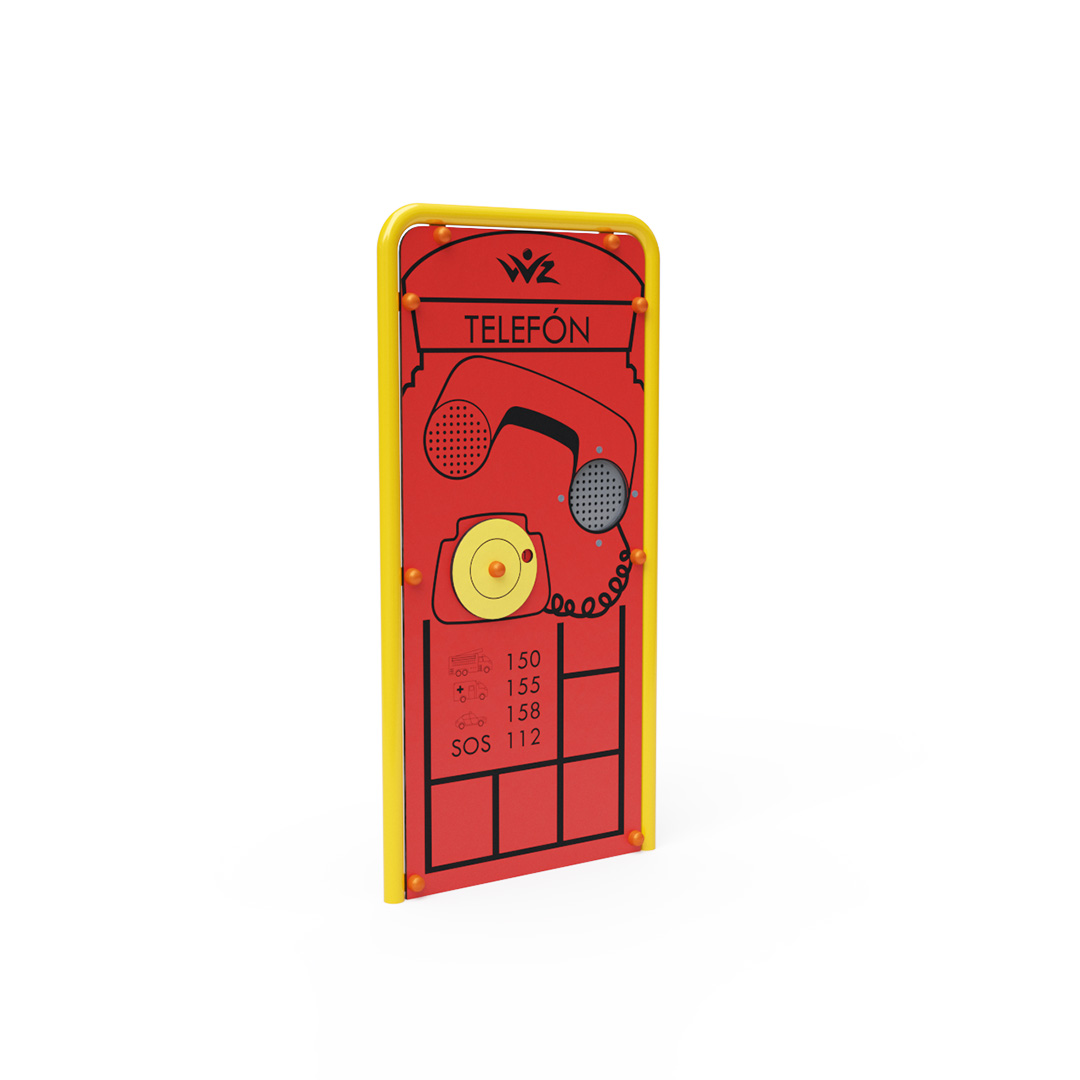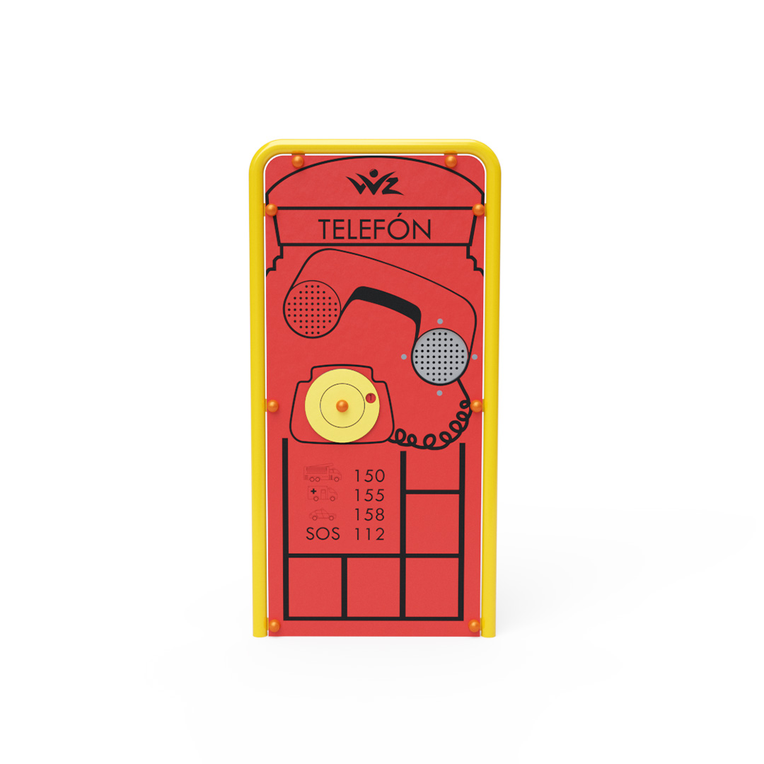 A föld alatt gégecsővel összekötött két külön részből álló, fontos telefonszámokat ábrázoló angol stílusú telefonfülke tartó szerkezete horganyzott és porszórt acélból, lapja pedig HPL jelölésű magas nyomású laminált kompaktlemezből készül. A magas nyomású HPL lemez törhetetlen, nem mérgező, újrahasznosítható, továbbá vegyszer- és UV álló. Minden kötőelem rozsdamentes acélból készül és a fokozott tartósság és biztonság érdekében műanyag kupakkal van lezárva. A használt anyagoknak köszönhetően az eszköz minimális karbantartást igényel! A játékeszközt úgy terveztük, hogy a hosszú élettartam mellett a maximális biztonságot is garantálja!