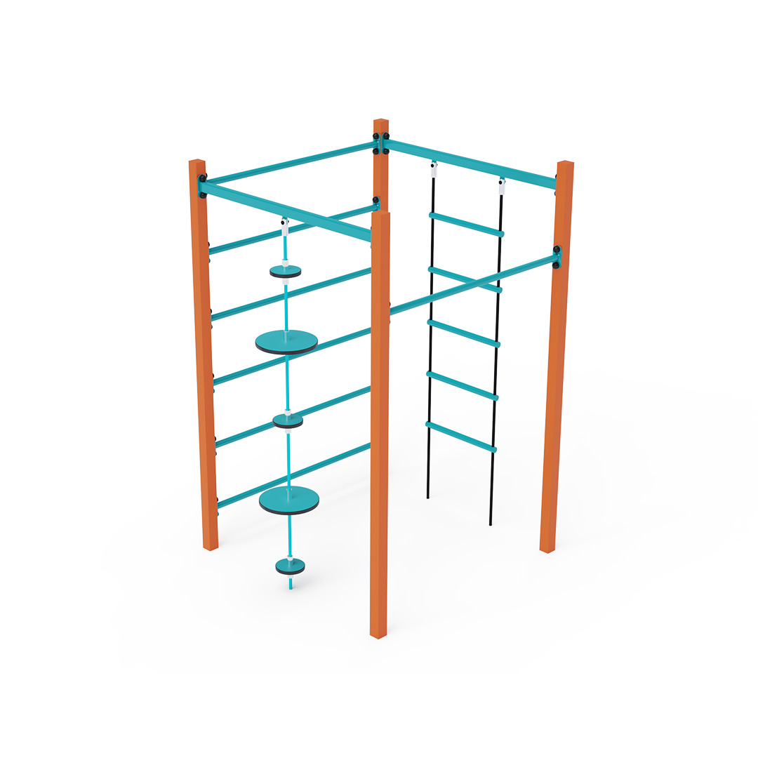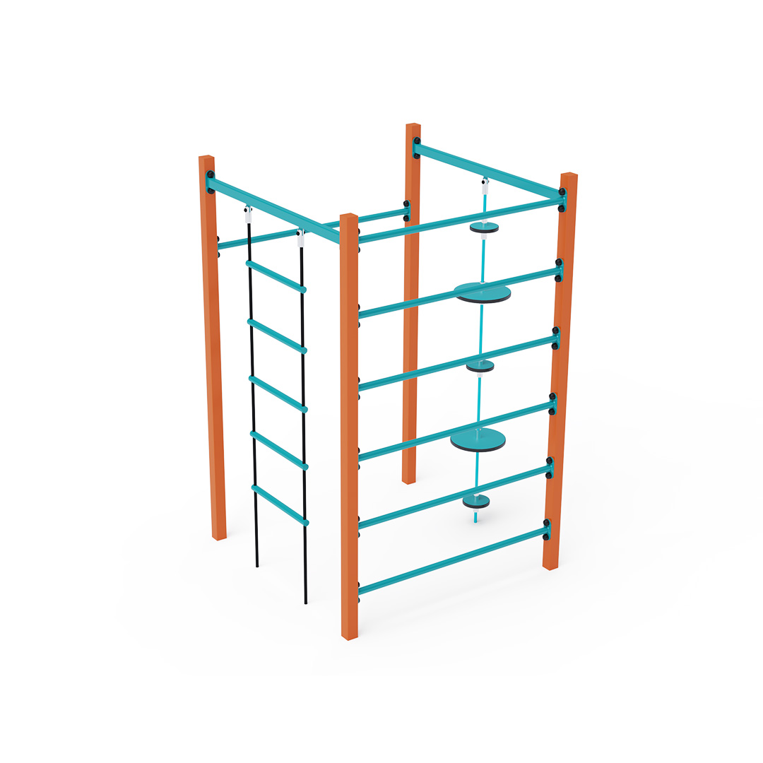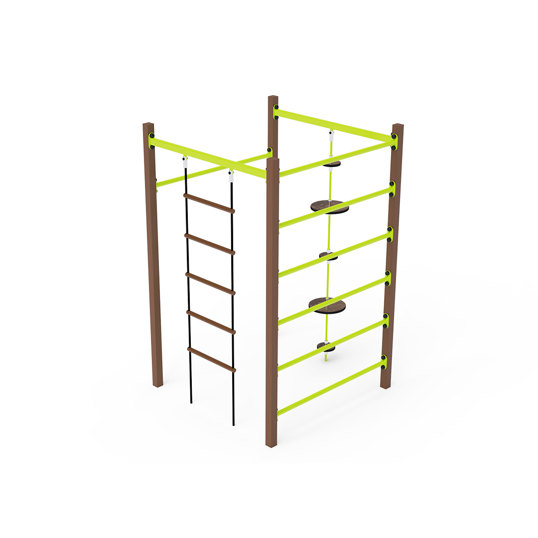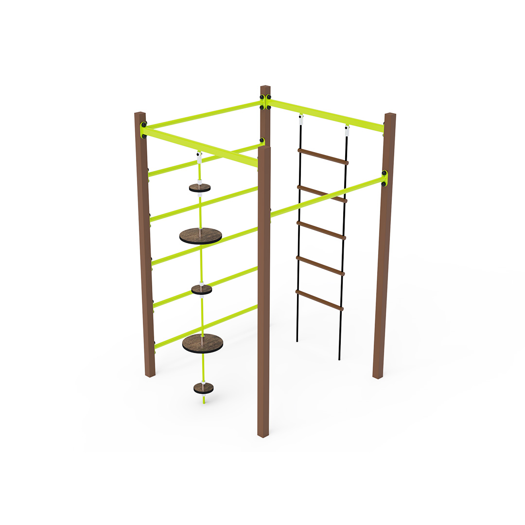 - Használt anyagok: horganyzott és proszórt acélszerkezet, HPL magas nyomású laminált kompaktlemez, acélmagos poliészter kötél, rozsdamentes acél kötőelemek