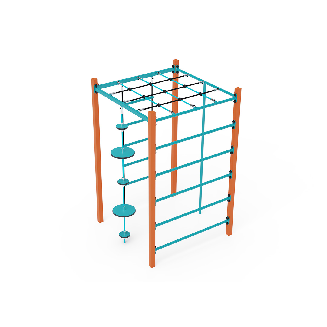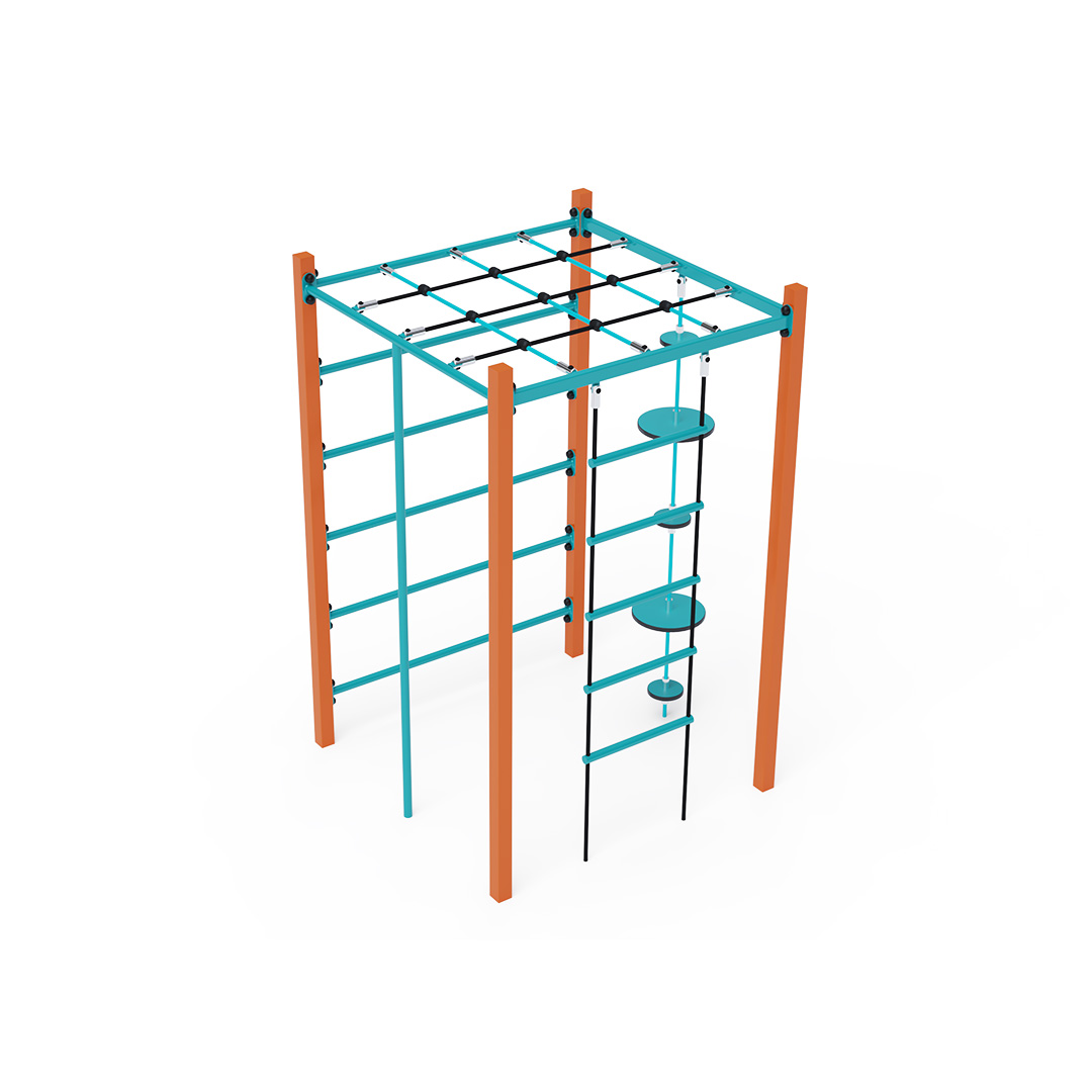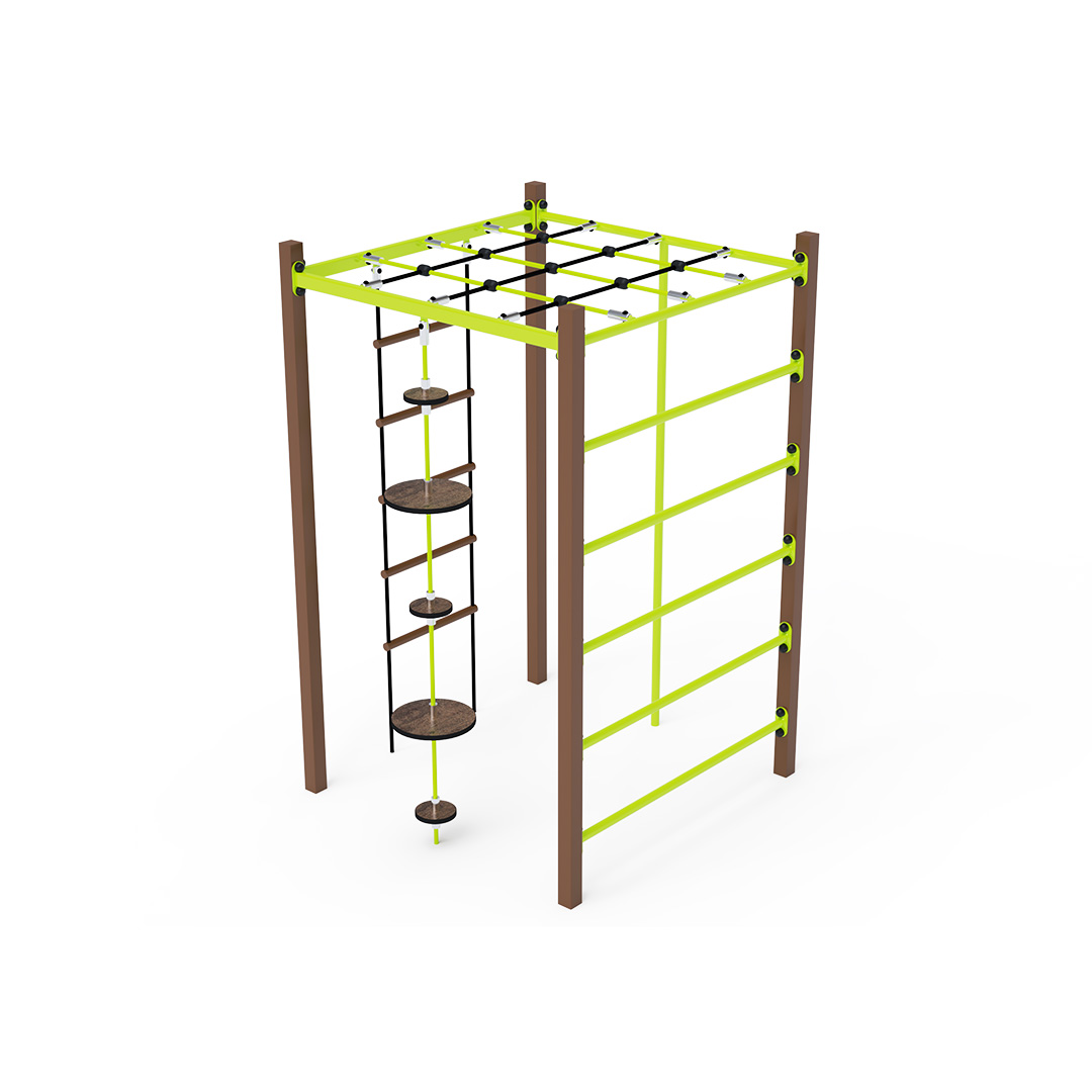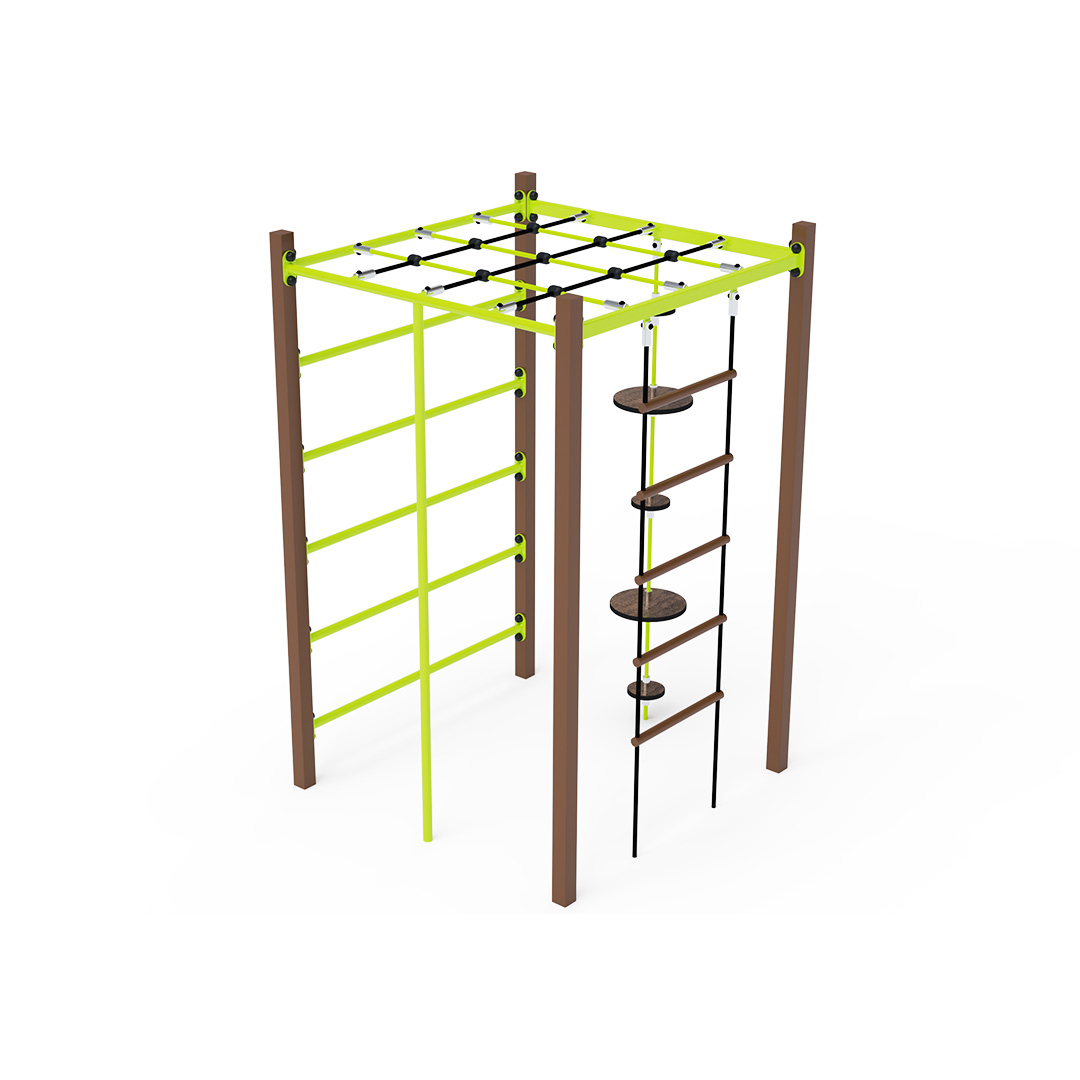 - Használt anyagok: horganyzott és proszórt acélszerkezet, HPL magas nyomású laminált kompaktlemez, acélmagos poliészter kötél, rozsdamentes acél kötőelemek
