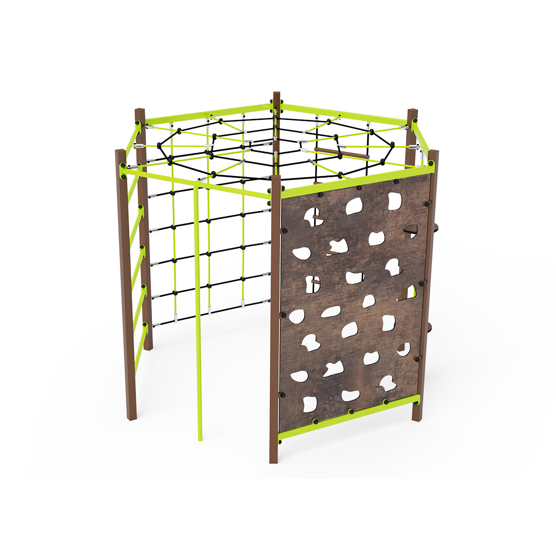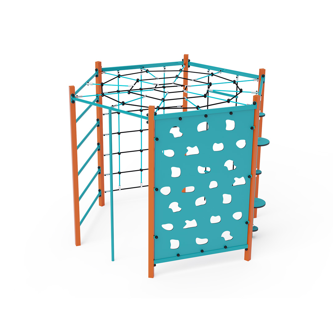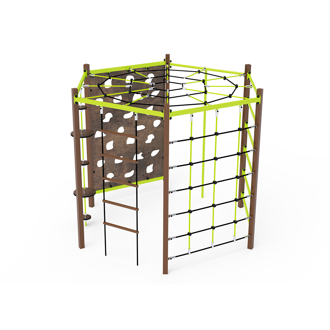 - Használt anyagok: horganyzott és proszórt acélszerkezet, HPL magas nyomású laminált kompaktlemez, acélmagos poliészter kötél, rozsdamentes acél kötőelemek