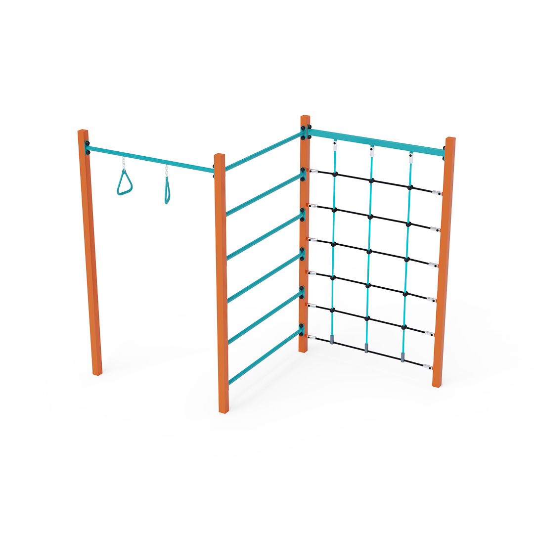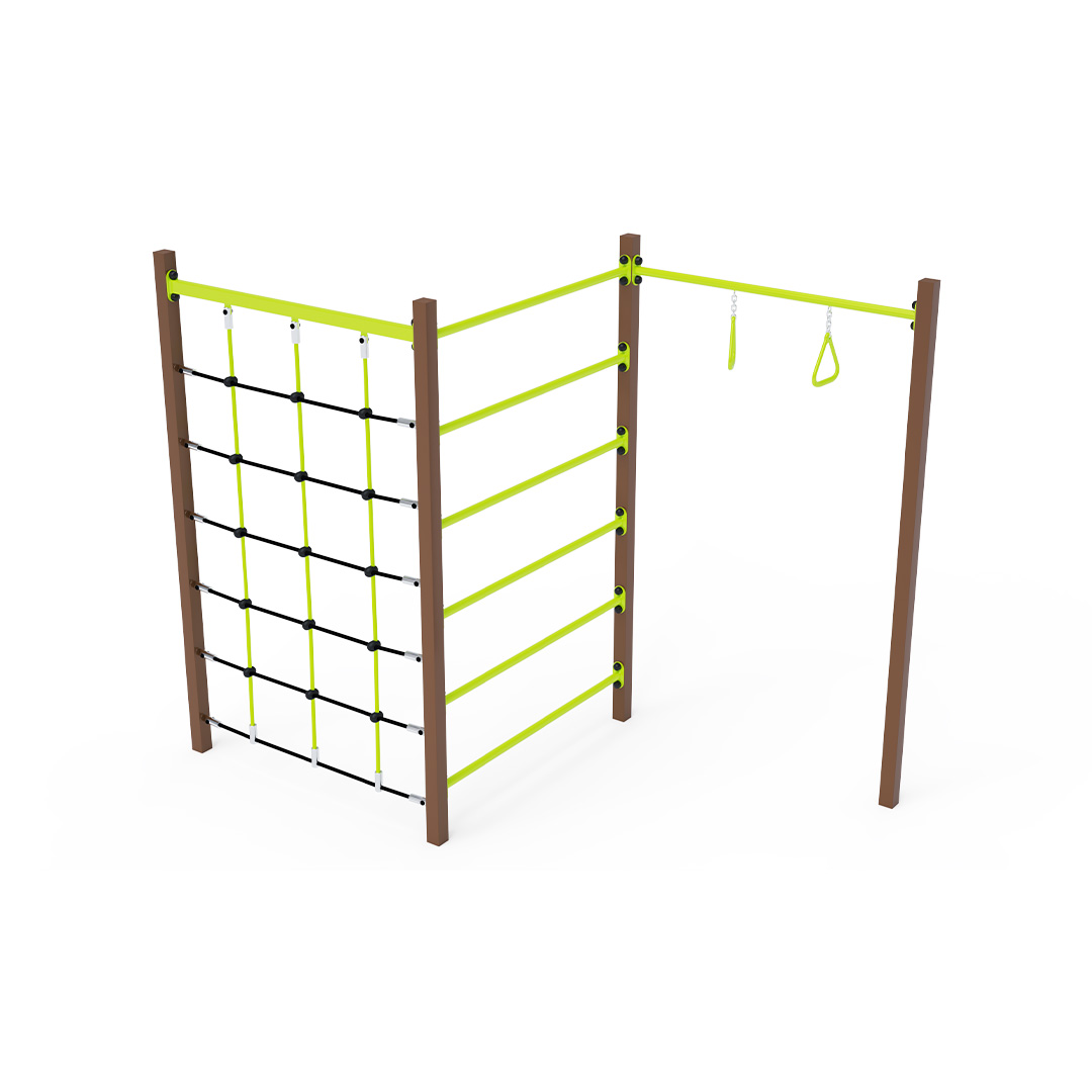 - Használt anyagok: horganyzott és proszórt acélszerkezet, HPL magas nyomású laminált kompaktlemez, acélmagos poliészter kötél, rozsdamentes acél kötőelemek