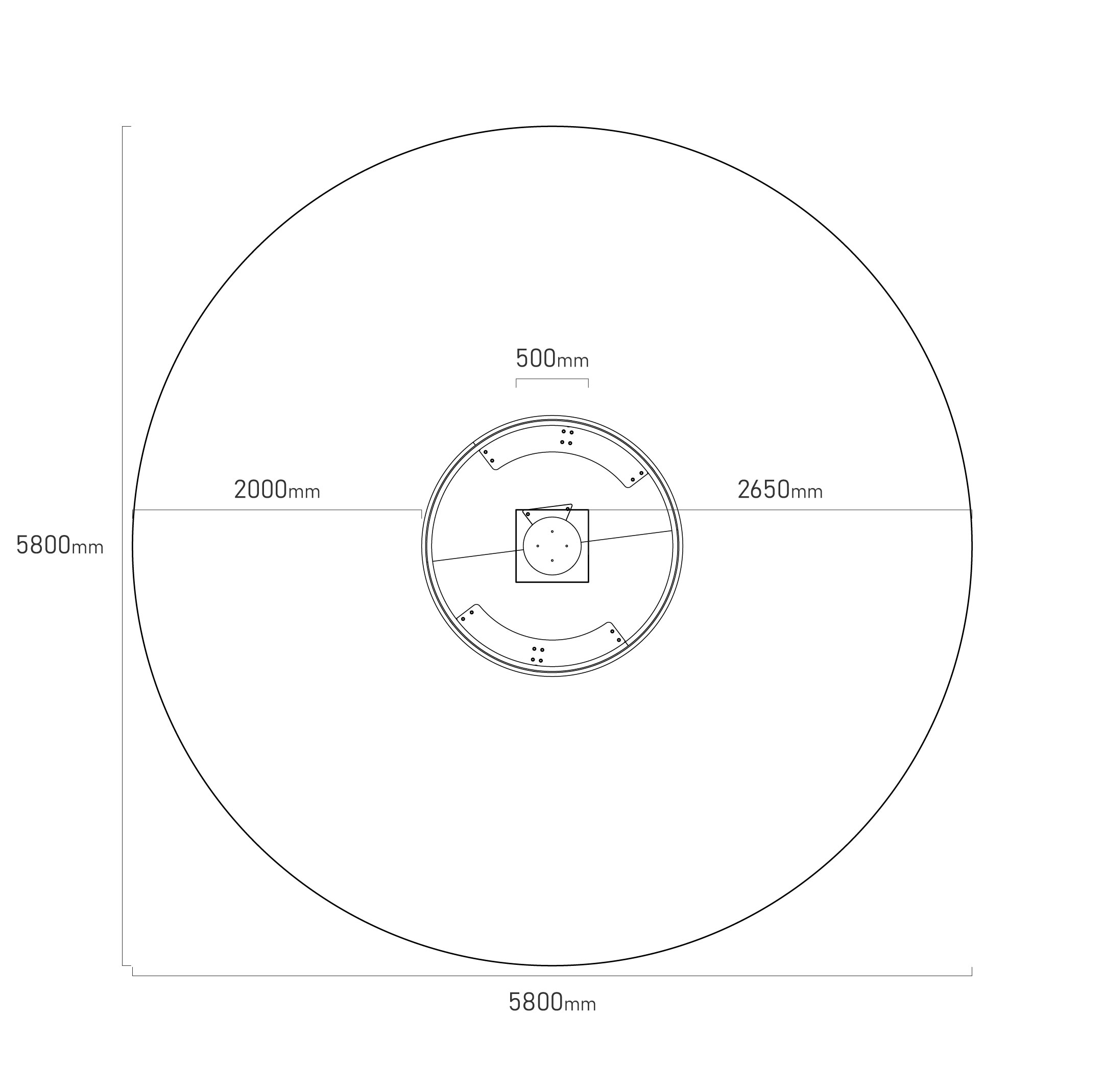 - Biztonsági zóna: 5,8 m átmérő