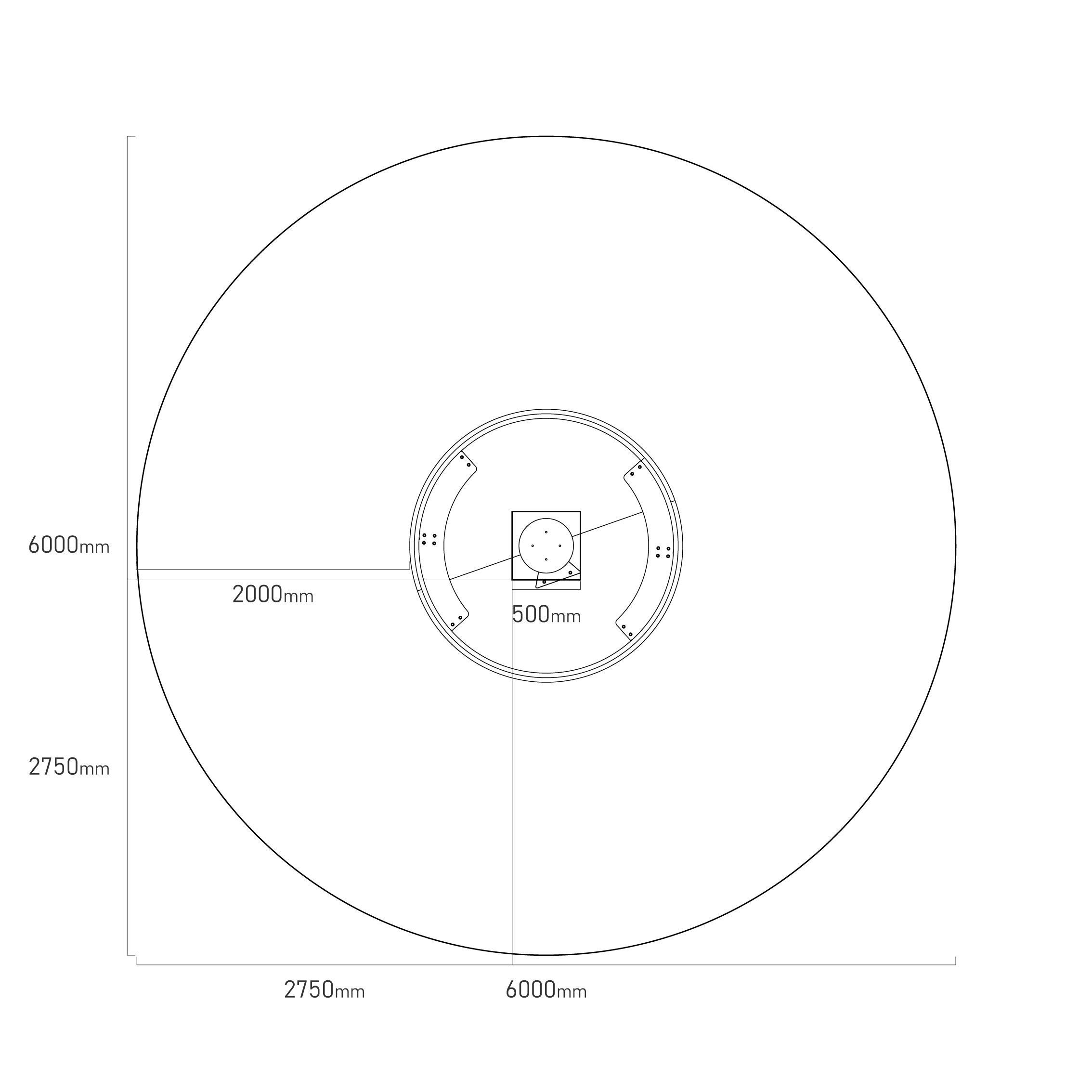 - Biztonsági zóna: 6,0 m átmérő