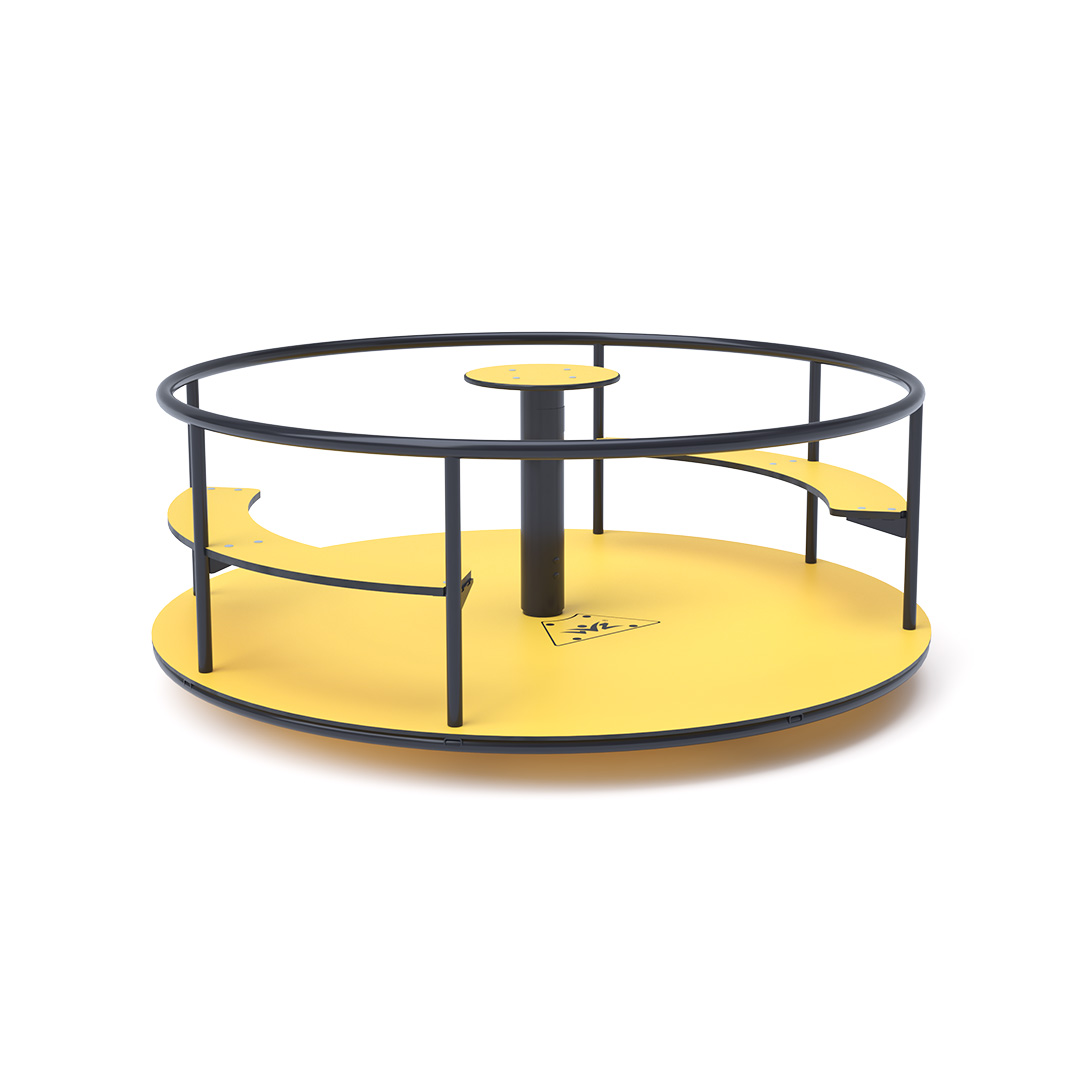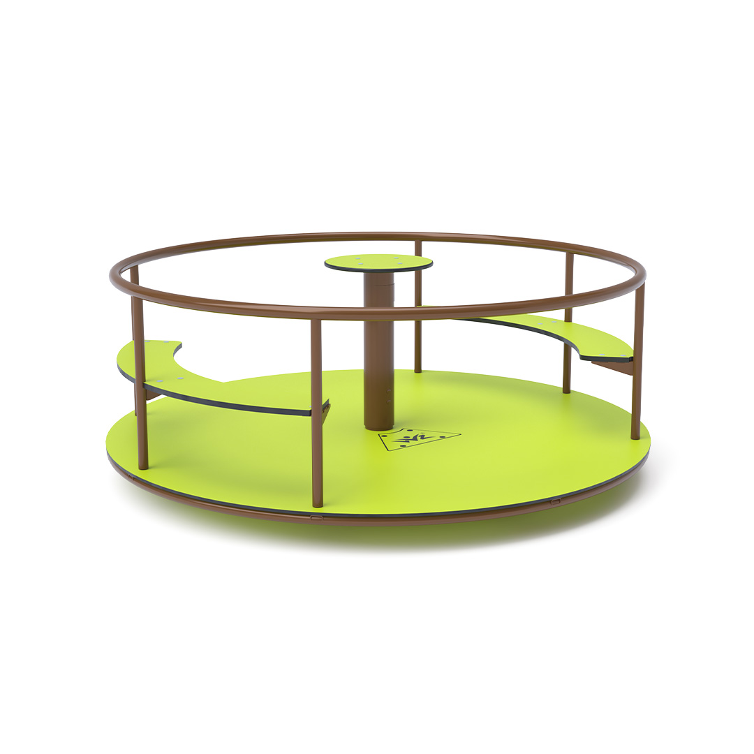 A 2 méter átmérőjű ülőkékkel ellátott körhinta szerkezete horganyzott és porszórt acélból, a kormánykerék, ülőrészek és a padló HPL jelölésű magas nyomású laminált kompaktlemezből készül. A magas nyomású HPL lemez törhetetlen, nem mérgező, újrahasznosítható, továbbá vegyszer- és UV álló. A használt anyagoknak köszönhetően az eszköz minimális karbantartást igényel! A játékeszközt úgy terveztük, hogy a hosszú élettartam mellett a maximális biztonságot is garantálja!