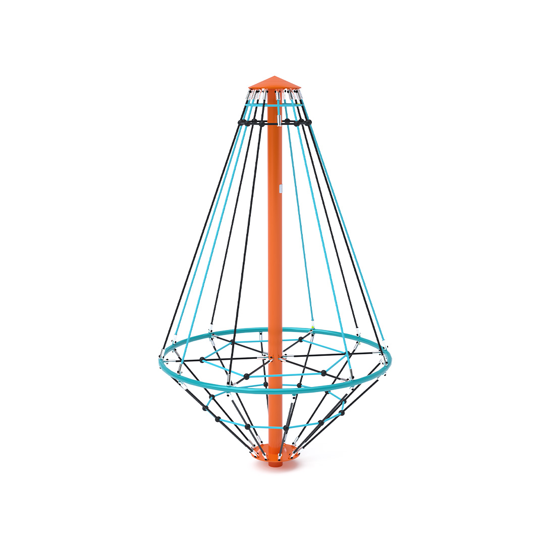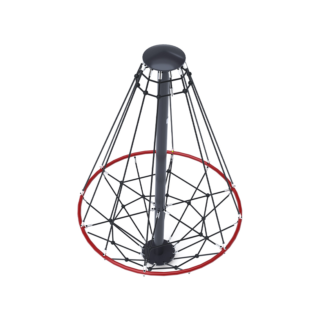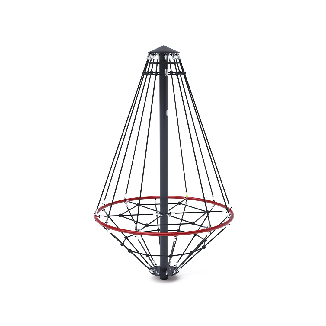 Az 1,8 méter átmérőjű kötél körhinta szerkezete horganyzott és porszórt acélból, kötélrendszere pedig acélmagos poliészter kötélből készül. A poliészter szálakból készült acélmagos kötél magas szilárdsággal bír és ezáltal jobban ellenáll a mechanikai igénybevételnek. Maga a poliészter számos pozitív tulajdonsággal rendelkezik. Színtartó, ellenáll a mikroorganizmusoknak, az időjárási hatásoknak, (pl. eső után gyorsan szárad). A használt anyagoknak köszönhetően az eszköz minimális karbantartást igényel! A játékeszközt úgy terveztük, hogy a hosszú élettartam mellett a maximális biztonságot is garantálja!