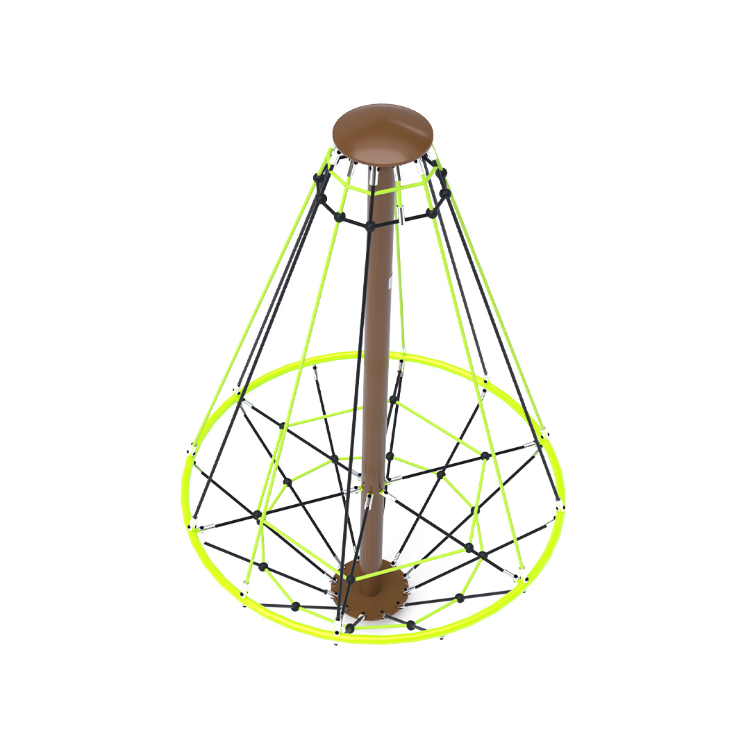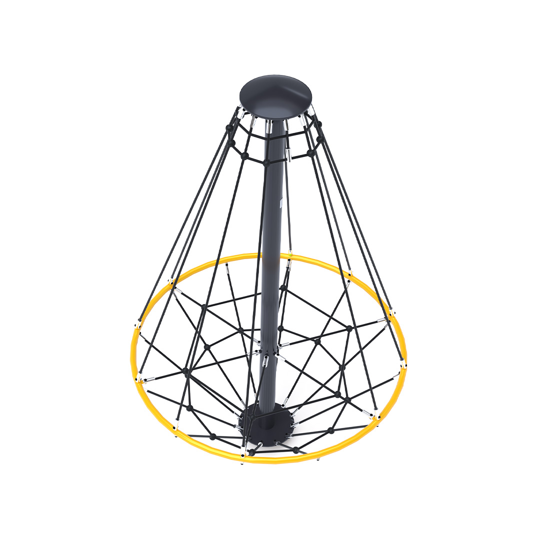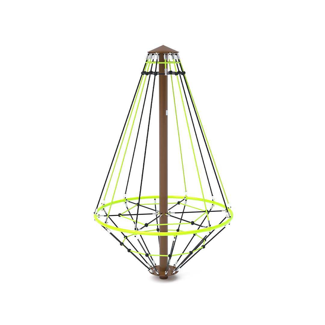 Az 1,8 méter átmérőjű kötél körhinta szerkezete horganyzott és porszórt acélból, kötélrendszere pedig acélmagos poliészter kötélből készül. A poliészter szálakból készült acélmagos kötél magas szilárdsággal bír és ezáltal jobban ellenáll a mechanikai igénybevételnek. Maga a poliészter számos pozitív tulajdonsággal rendelkezik. Színtartó, ellenáll a mikroorganizmusoknak, az időjárási hatásoknak, (pl. eső után gyorsan szárad). A használt anyagoknak köszönhetően az eszköz minimális karbantartást igényel! A játékeszközt úgy terveztük, hogy a hosszú élettartam mellett a maximális biztonságot is garantálja!
