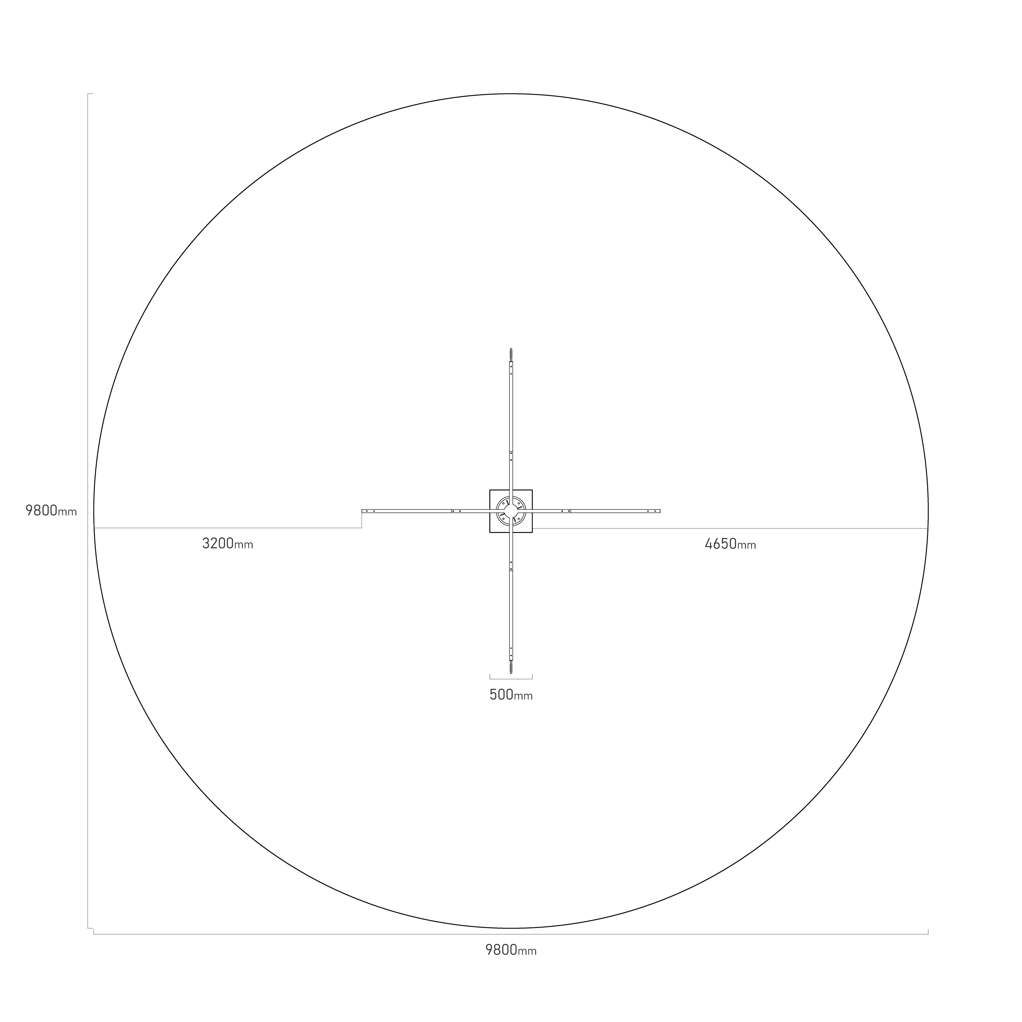 - Biztonsági zóna: 9,8 m átmérő