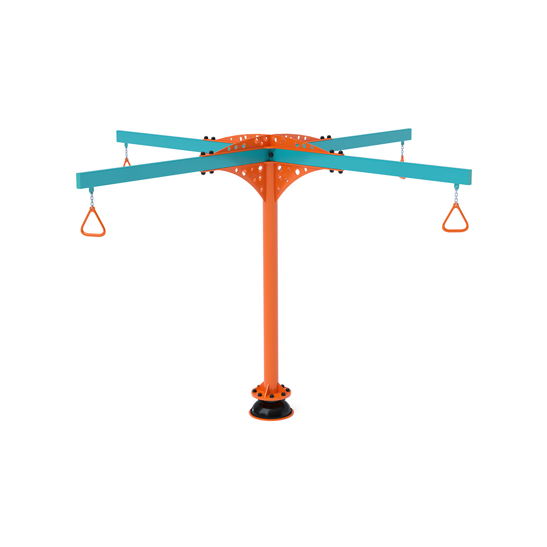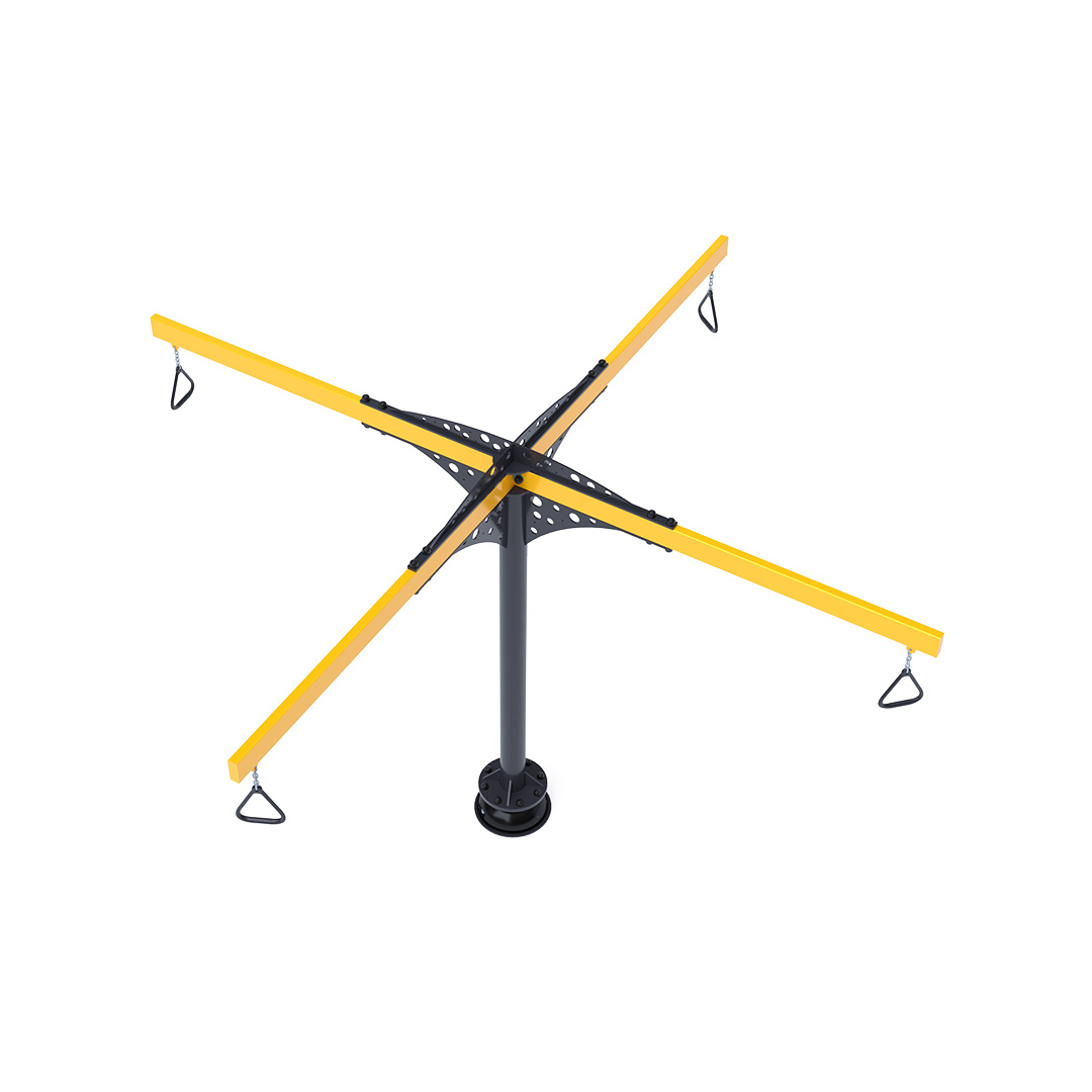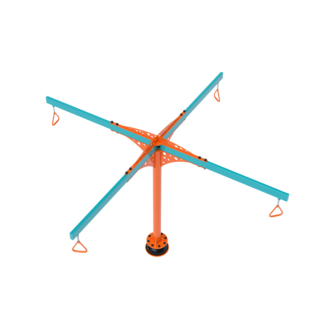 A 3,4 méter átmérőjű függeszkedő körhinta szerkezete horganyzott és porszórt acélból készül. A forgó mechanizmusú kapaszkodók láncokkal vannak rögzítve. A használt anyagoknak köszönhetően az eszköz minimális karbantartást igényel! A játékeszközt úgy terveztük, hogy a hosszú élettartam mellett a maximális biztonságot is garantálja!