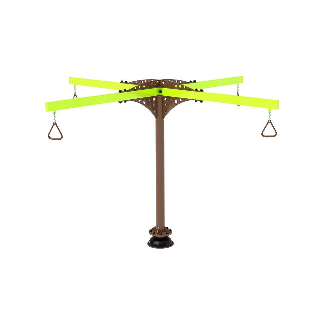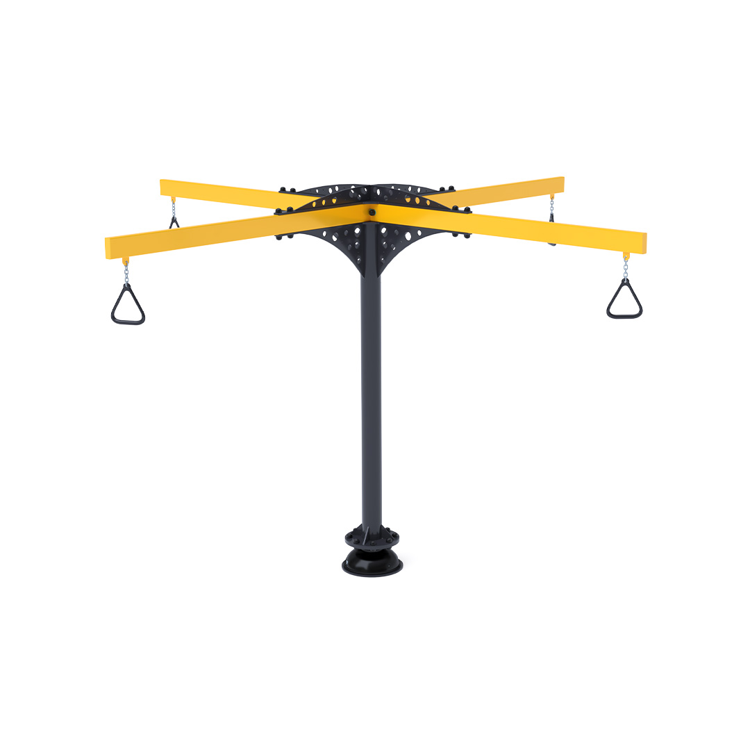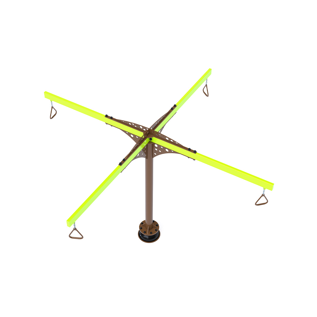 A 3,4 méter átmérőjű függeszkedő körhinta szerkezete horganyzott és porszórt acélból készül. A forgó mechanizmusú kapaszkodók láncokkal vannak rögzítve. A használt anyagoknak köszönhetően az eszköz minimális karbantartást igényel! A játékeszközt úgy terveztük, hogy a hosszú élettartam mellett a maximális biztonságot is garantálja!