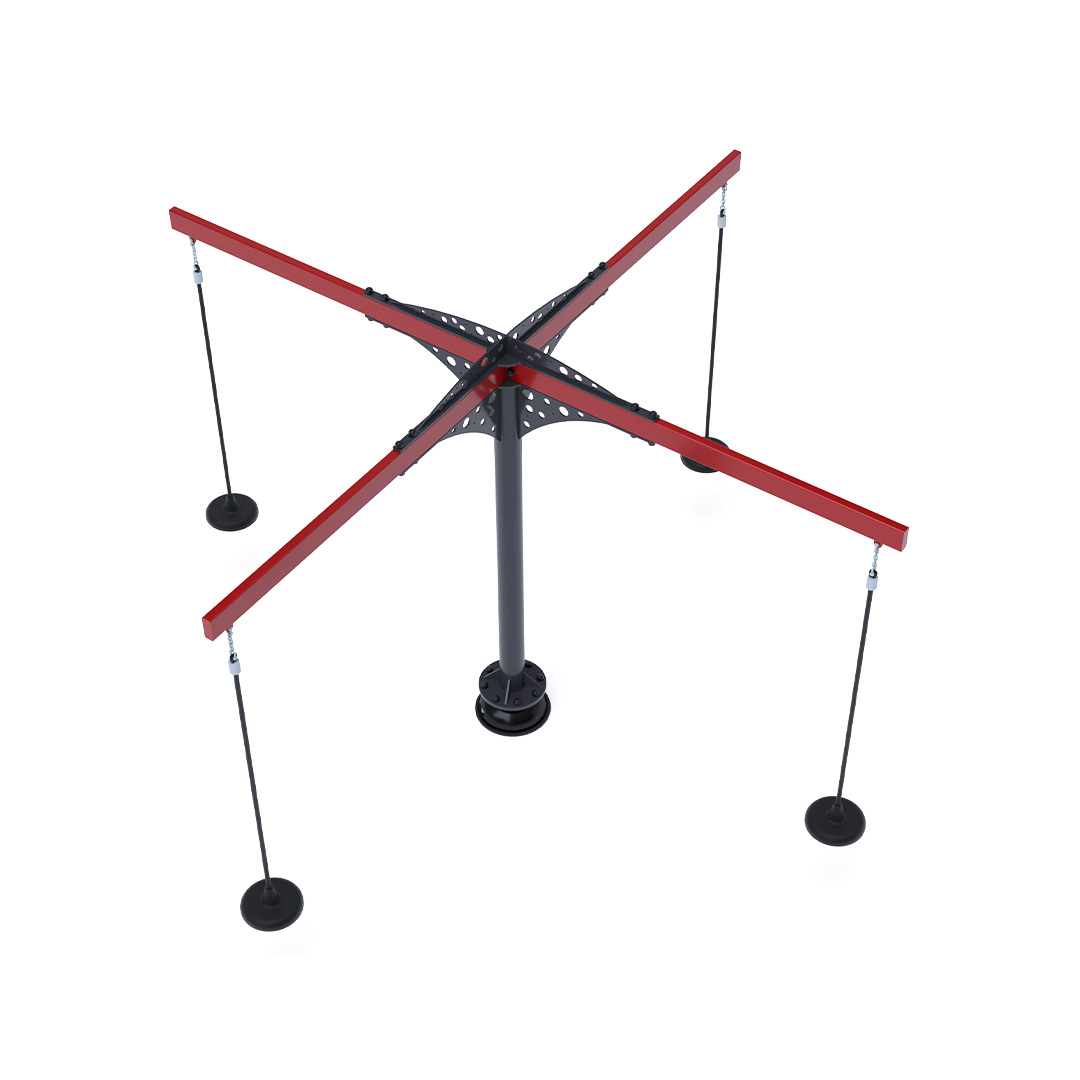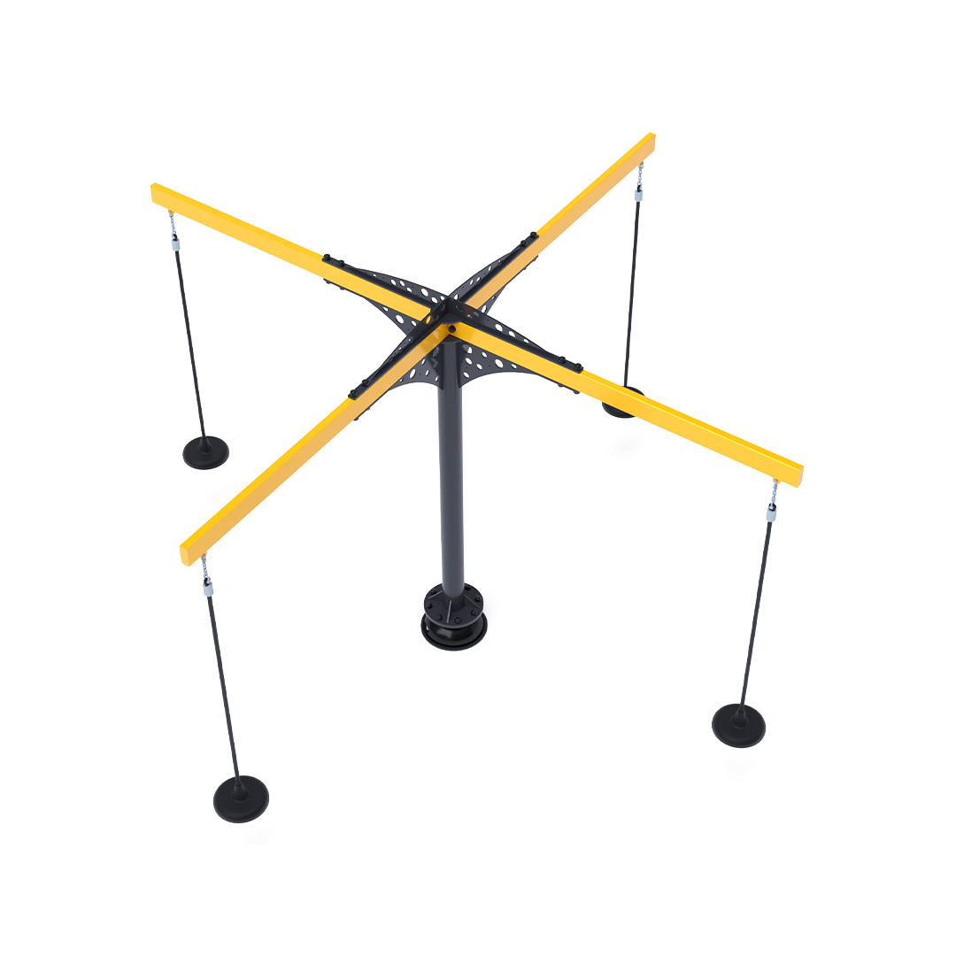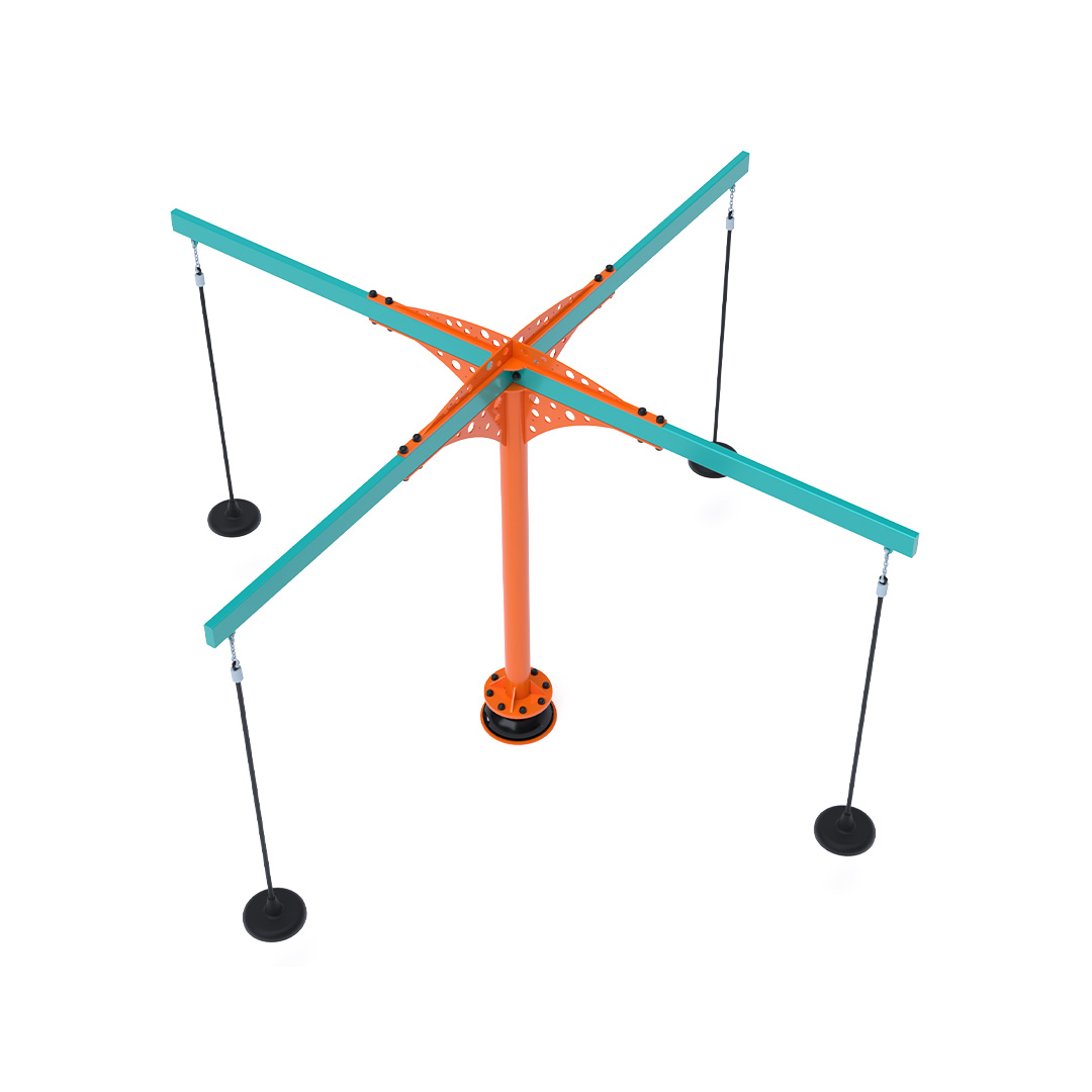 A 3,4 méter átmérőjű tányéros körhinta szerkezete horganyzott és porszórt acélból készül. A forgó mechanizmusú tányéros ülőkék láncokkal vannak rögzítve. A használt anyagoknak köszönhetően az eszköz minimális karbantartást igényel! A játékeszközt úgy terveztük, hogy a hosszú élettartam mellett a maximális biztonságot is garantálja!