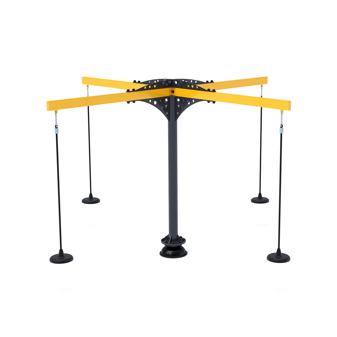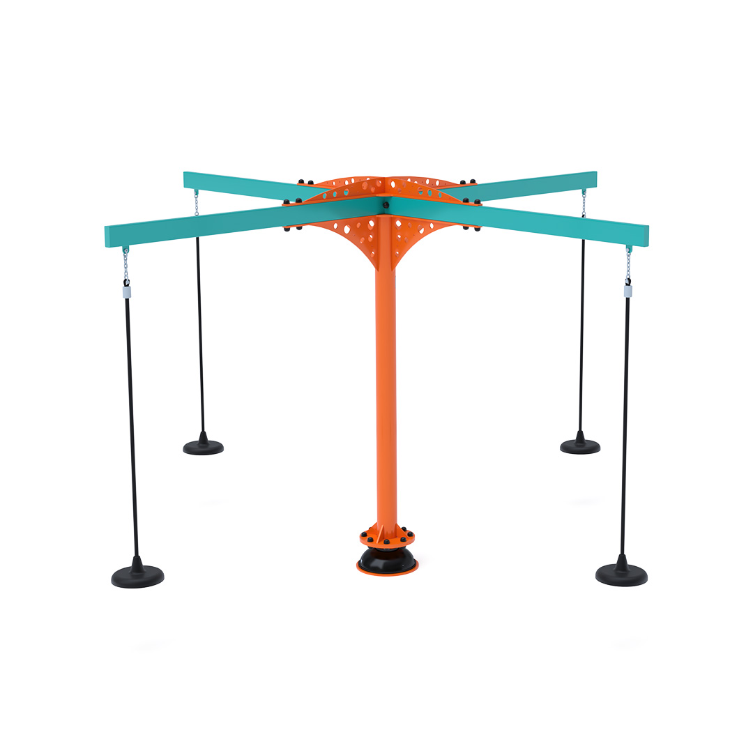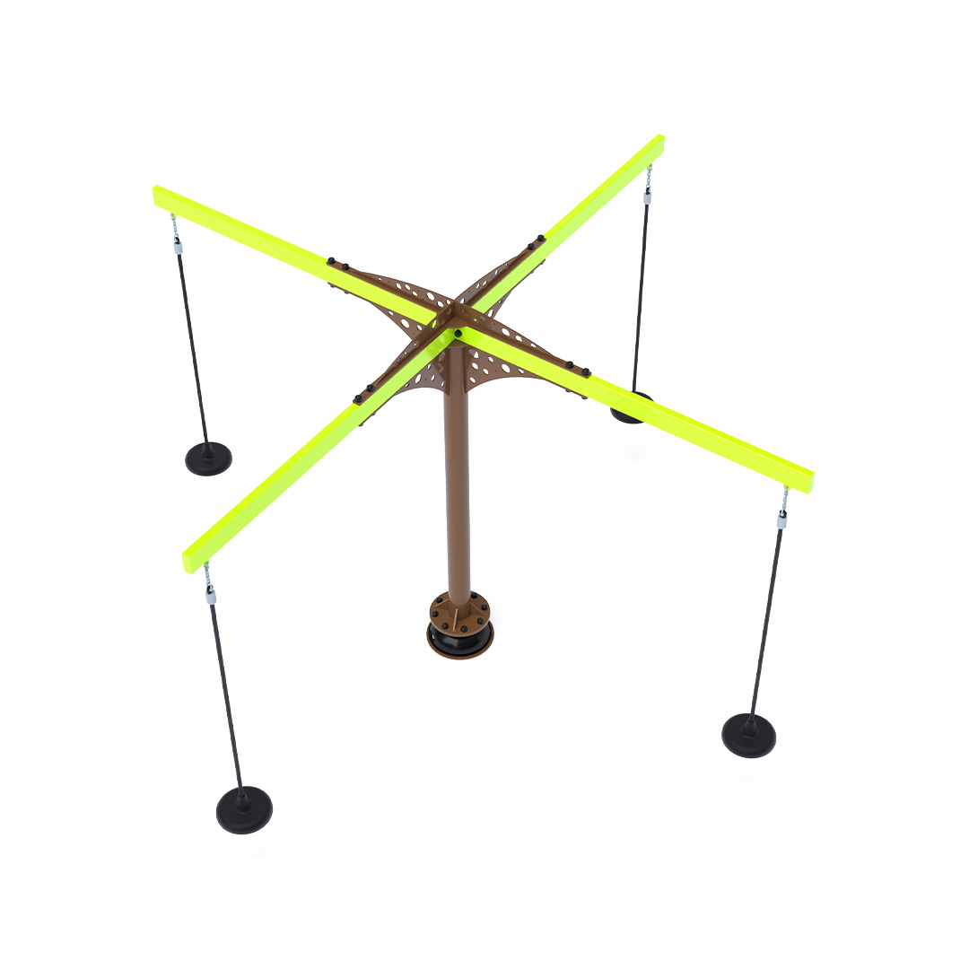 A 3,4 méter átmérőjű tányéros körhinta szerkezete horganyzott és porszórt acélból készül. A forgó mechanizmusú tányéros ülőkék láncokkal vannak rögzítve. A használt anyagoknak köszönhetően az eszköz minimális karbantartást igényel! A játékeszközt úgy terveztük, hogy a hosszú élettartam mellett a maximális biztonságot is garantálja!