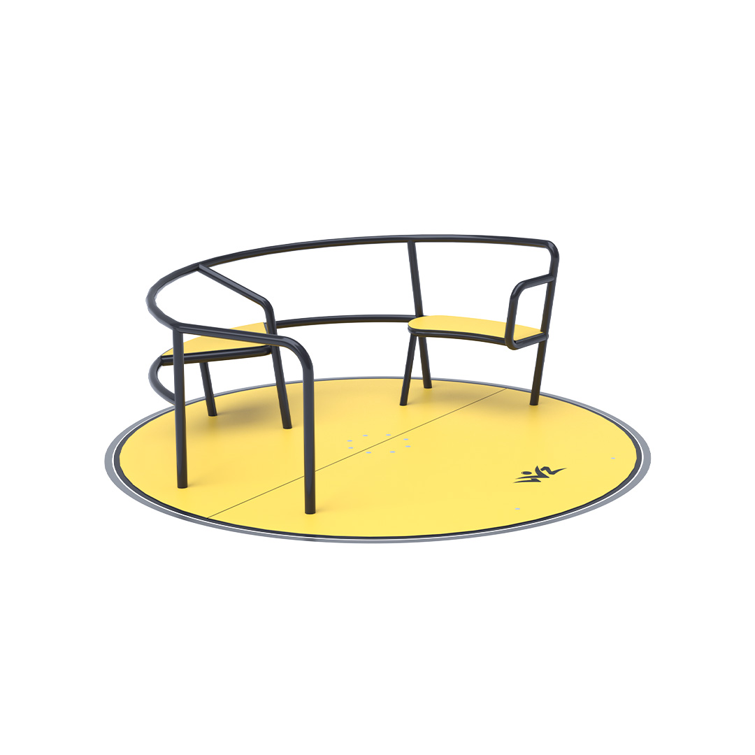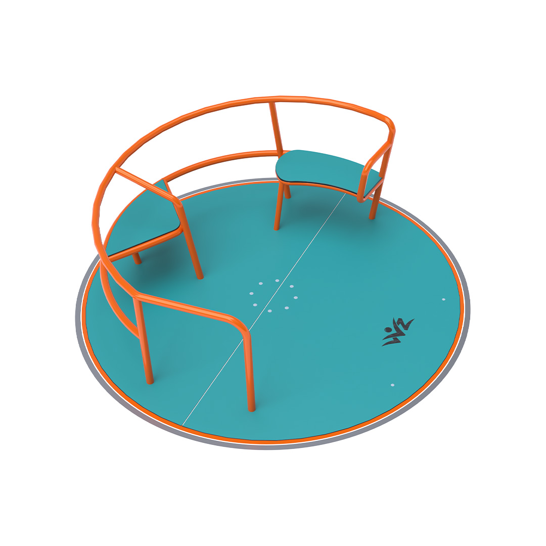 A 2 méter átmérőjű, akadálymentesített, ülőkékkel ellátott körhinta kialakításának köszönhetően, megkülönböztetés nélkül kínál szórakozást minden gyermek számára. Szerkezete horganyzott és porszórt acélból, az ülőrészek és a padló HPL jelölésű magas nyomású laminált kompaktlemezből készül. A magas nyomású HPL lemez törhetetlen, nem mérgező, újrahasznosítható, továbbá vegyszer- és UV álló. A használt anyagoknak köszönhetően az eszköz minimális karbantartást igényel! A játékeszközt úgy terveztük, hogy a hosszú élettartam mellett a maximális biztonságot is garantálja!