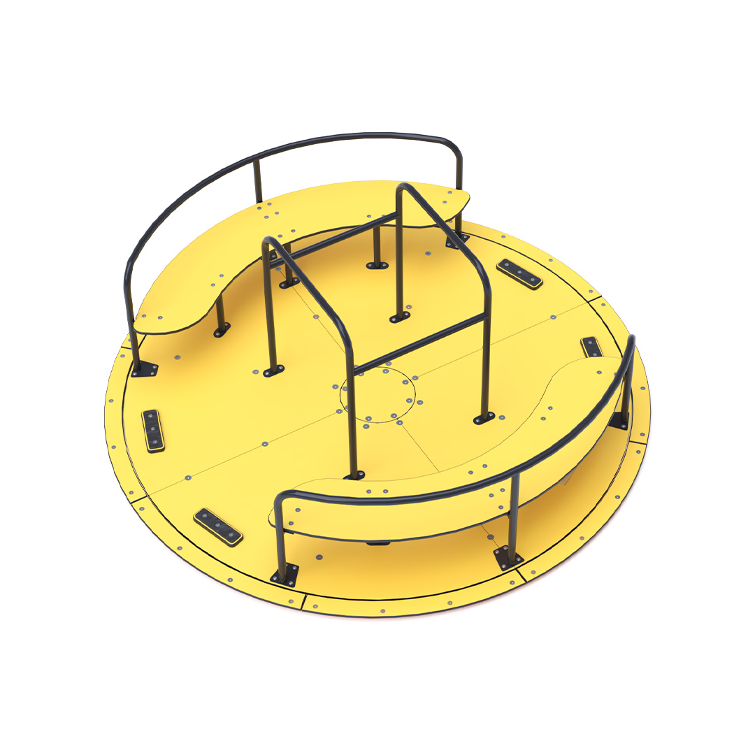 A 2,5 méter átmérőjű, akadálymentesített, ülőkékkel ellátott körhinta kialakításának köszönhetően, megkülönböztetés nélkül kínál szórakozást minden gyermek számára. Kialakításának köszönhetően egyszerre akár 2 kerekesszék is elfér rajta. Szerkezete horganyzott és porszórt acélból, az ülőrészek és a padló HPL jelölésű magas nyomású laminált kompaktlemezből készül. A magas nyomású HPL lemez törhetetlen, nem mérgező, újrahasznosítható, továbbá vegyszer- és UV álló. A használt anyagoknak köszönhetően az eszköz minimális karbantartást igényel! A játékeszközt úgy terveztük, hogy a hosszú élettartam mellett a maximális biztonságot is garantálja!
