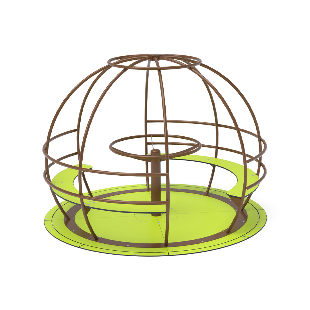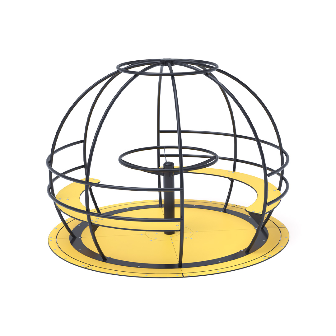 A 2,5 méter átmérőjű, földgömböt ábrázoló akadálymentesített körhinta kialakításának köszönhetően, megkülönböztetés nélkül kínál szórakozást minden gyermek számára. Szerkezete horganyzott és porszórt acélból, az ülőkék és a padló pedig HPL jelölésű magas nyomású laminált kompaktlemezből készül. A magas nyomású HPL lemez törhetetlen, nem mérgező, újrahasznosítható, továbbá vegyszer- és UV álló. A használt anyagoknak köszönhetően az eszköz minimális karbantartást igényel! A játékeszközt úgy terveztük, hogy a hosszú élettartam mellett a maximális biztonságot is garantálja!