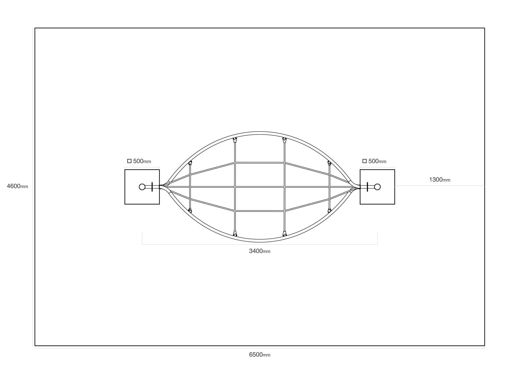 - Használt anyagok: horganyzott és porszórt acélszerkezet, acélmagos poliészter kötél, HDPE nagy sűrűségű polietilén kupakok, rozsdamentes acél kötőelemek