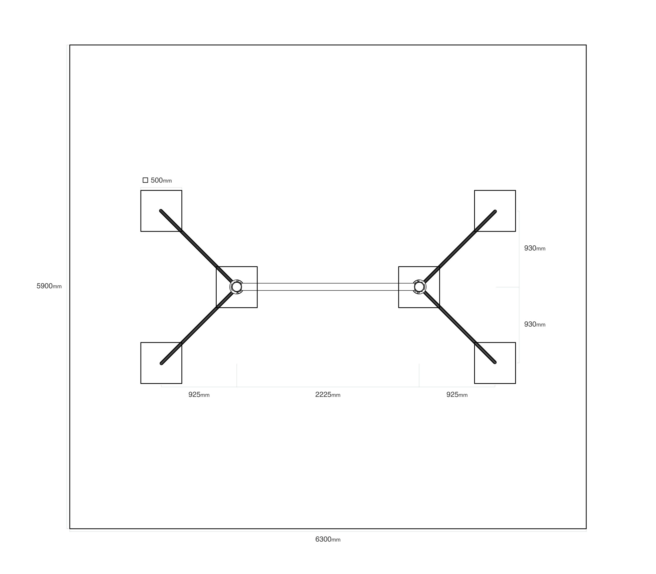 - Biztonsági zóna: 6,3 × 5,9 m