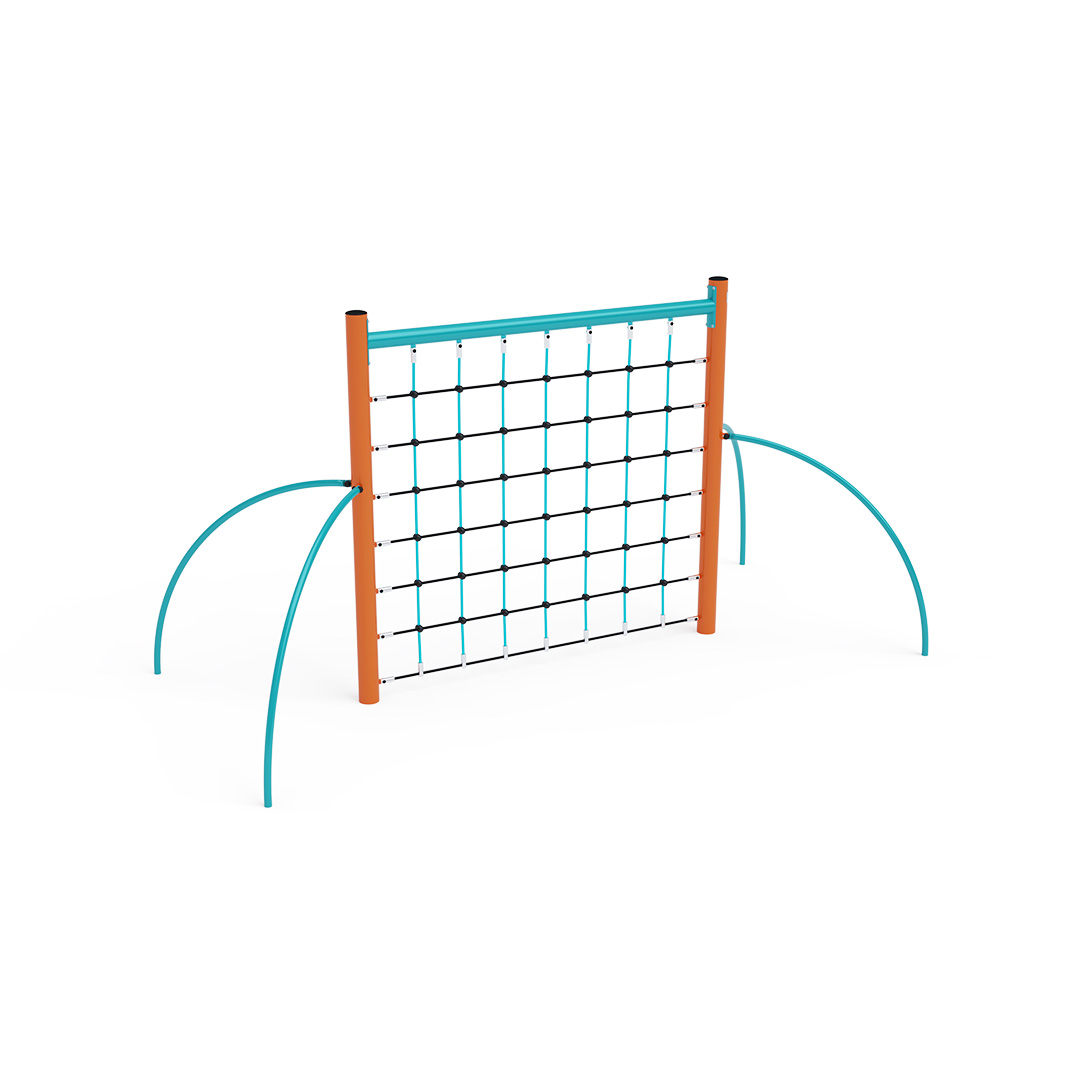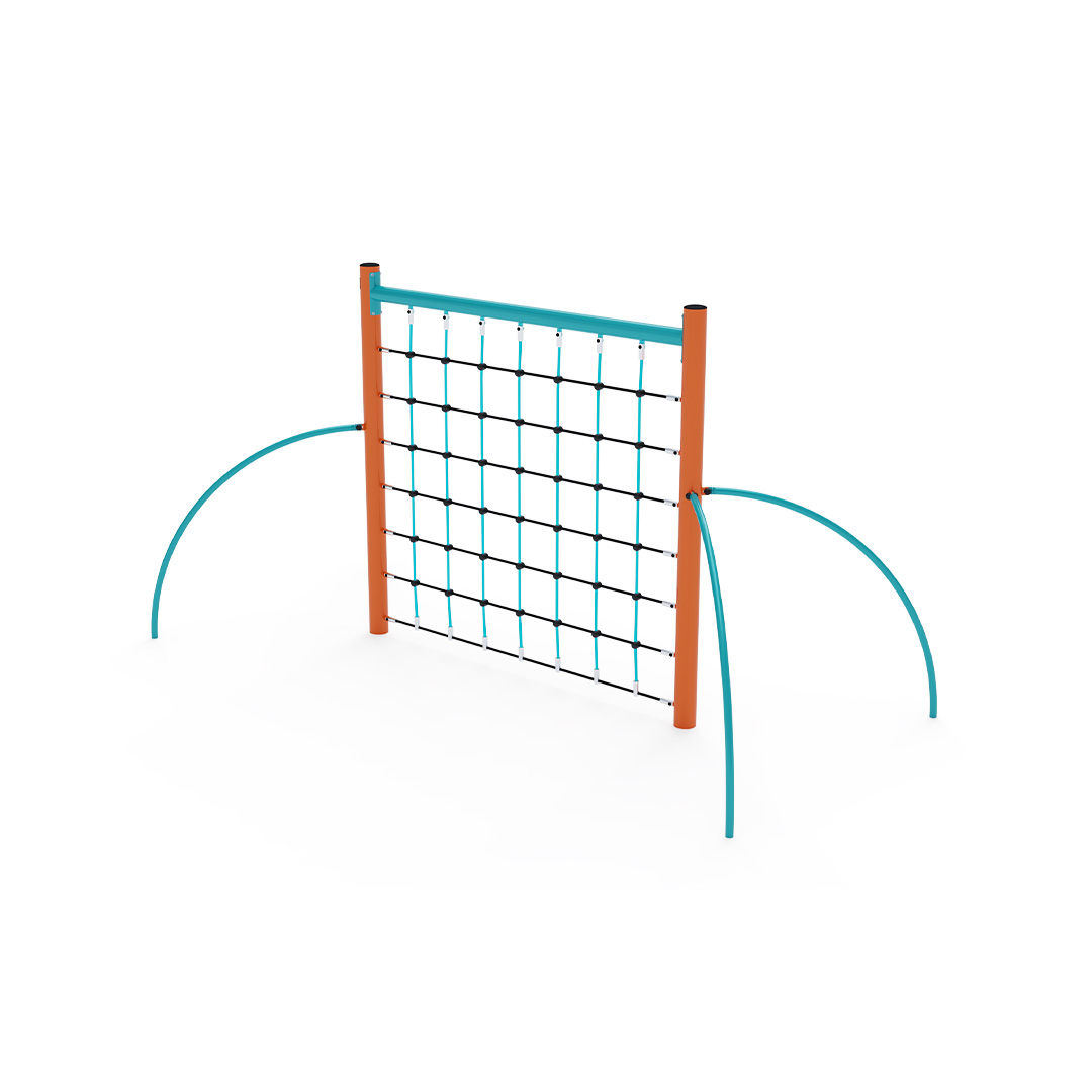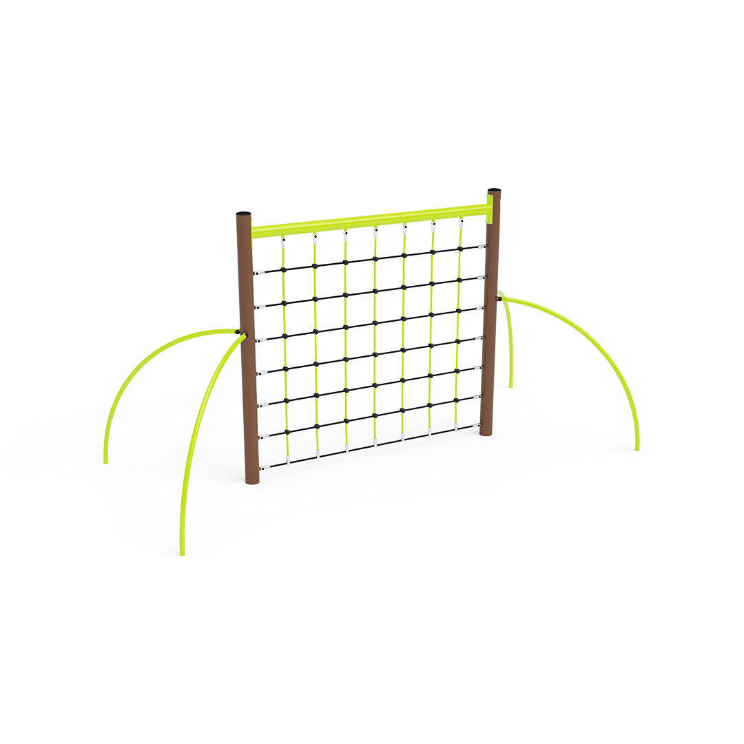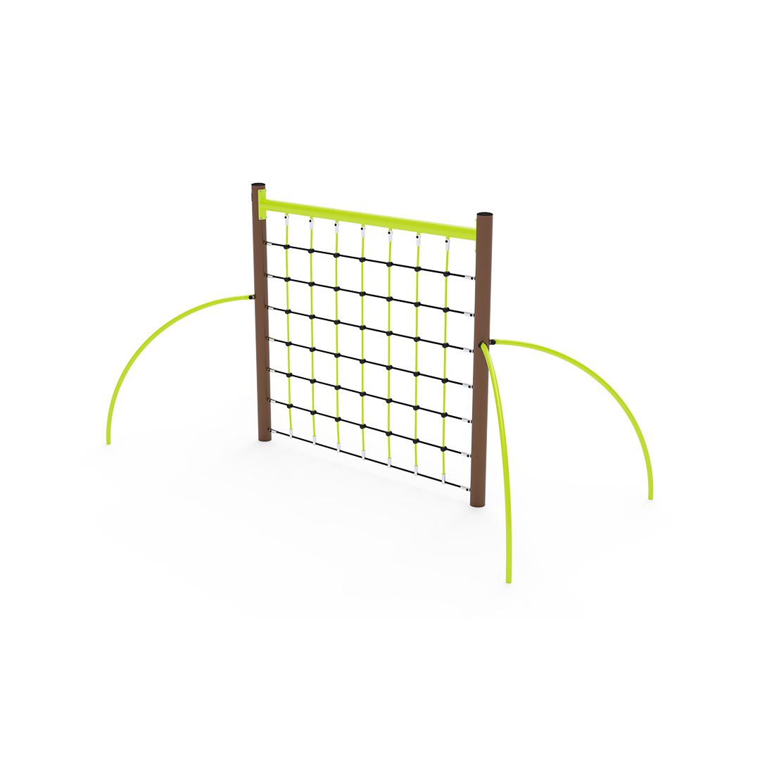 A függőleges kötélháló tartószerkezete horganyzott és porszórt acélból, kötélrendszere pedig acélmagos poliészter kötélből készül. A poliészter szálakból készült acélmagos kötél magas szilárdsággal bír, és ezáltal jobban ellenáll a mechanikai igénybevételnek. Maga a poliészter számos pozitív tulajdonsággal rendelkezik. Színtartó, ellenáll a mikroorganizmusoknak, az időjárási hatásoknak (pl. eső után gyorsan szárad). Minden kötőelem rozsdamentes acélból készül, és a fokozott tartósság és biztonság érdekében műanyag kupakkal van lezárva. A használt anyagoknak köszönhetően az eszköz minimális karbantartást igényel! A játékeszközt úgy terveztük, hogy a hosszú élettartam mellett a maximális biztonságot is garantálja!