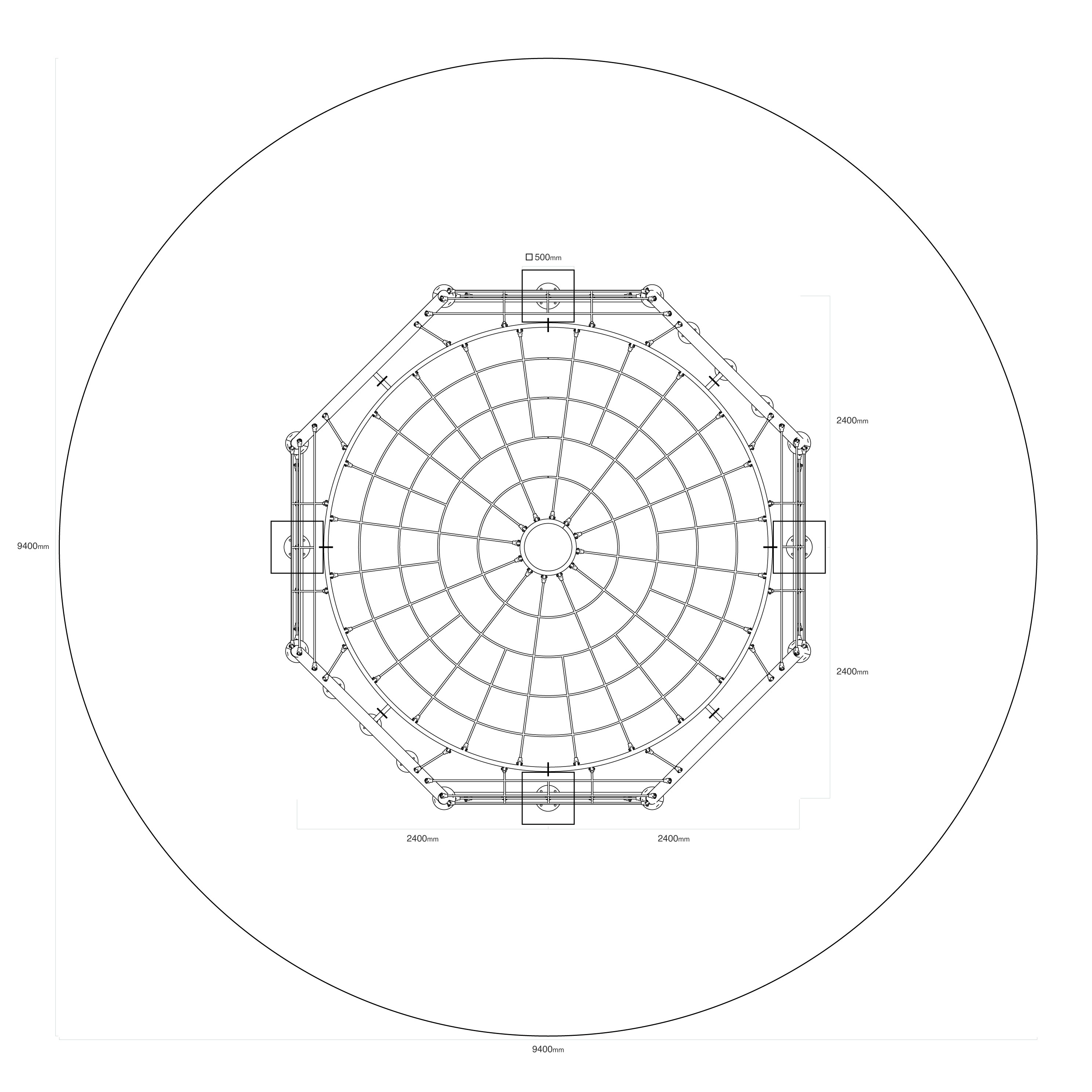 - Az eszköz méretei: átmérő 5,4 m, magasság 2,3 m