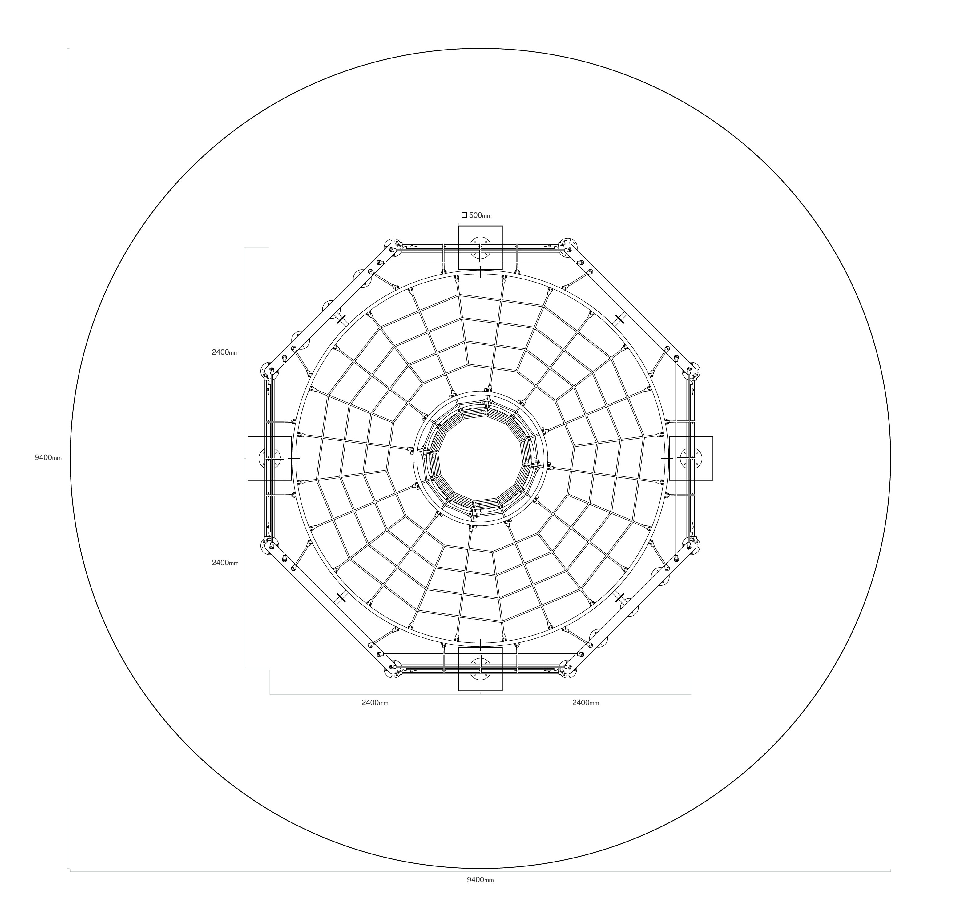 - Az eszköz méretei: átmérő 5,4 m, magasság 2,3 m
