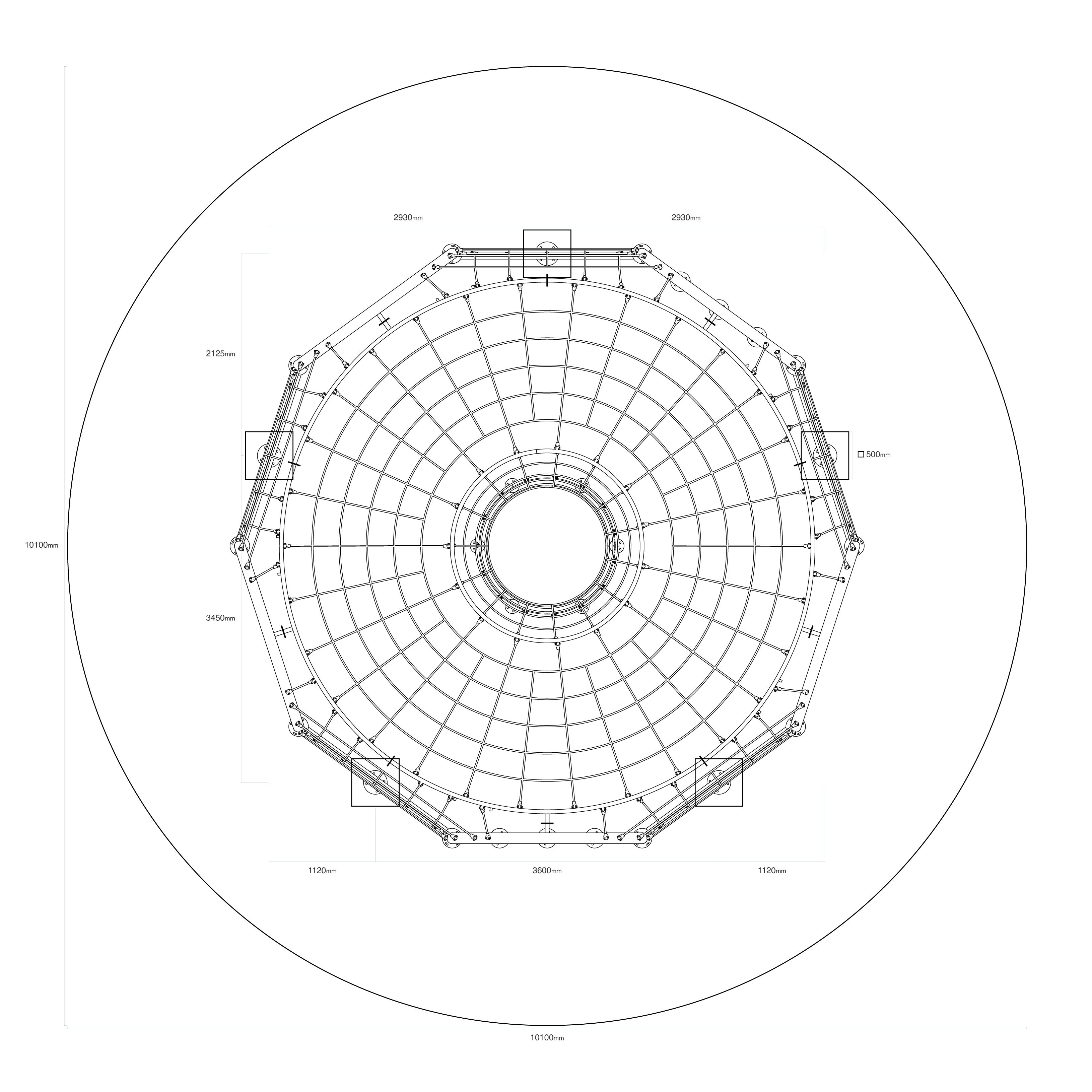 - Az eszköz méretei: átmérő 6,6 m, magasság 2,3 m