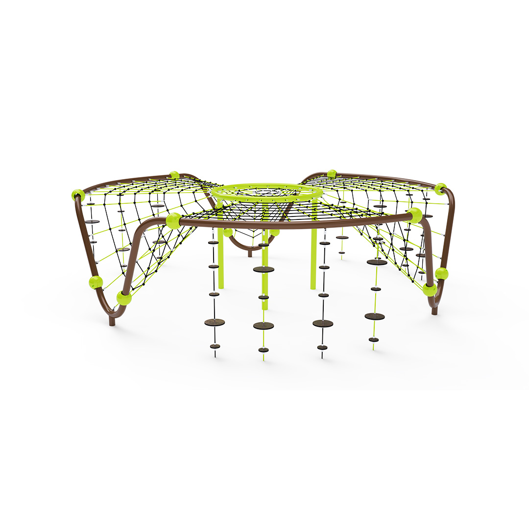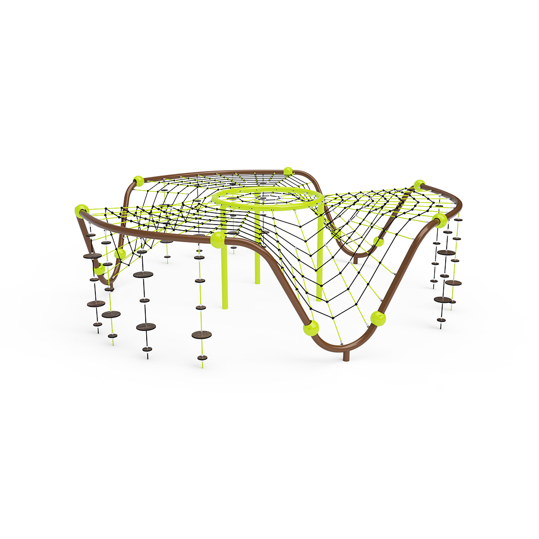A hullámos kötélpályarendszer tartószerkezete horganyzott és porszórt acélból, kötélrendszere pedig acélmagos poliészter kötélből készül. A poliészter szálakból készült acélmagos kötél magas szilárdsággal bír, és ezáltal jobban ellenáll a mechanikai igénybevételnek. Maga a poliészter számos pozitív tulajdonsággal rendelkezik. Színtartó, ellenáll a mikroorganizmusoknak, az időjárási hatásoknak (pl. eső után gyorsan szárad). Minden kötőelem rozsdamentes acélból készül, és a fokozott tartósság és biztonság érdekében műanyag kupakkal van lezárva. A használt anyagoknak köszönhetően az eszköz minimális karbantartást igényel! A játékeszközt úgy terveztük, hogy a hosszú élettartam mellett a maximális biztonságot is garantálja!