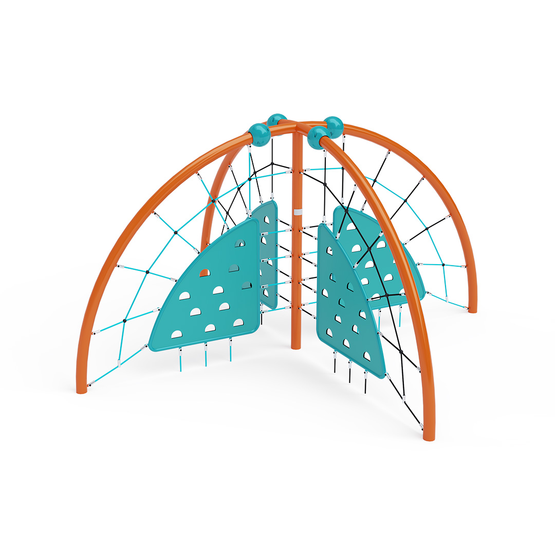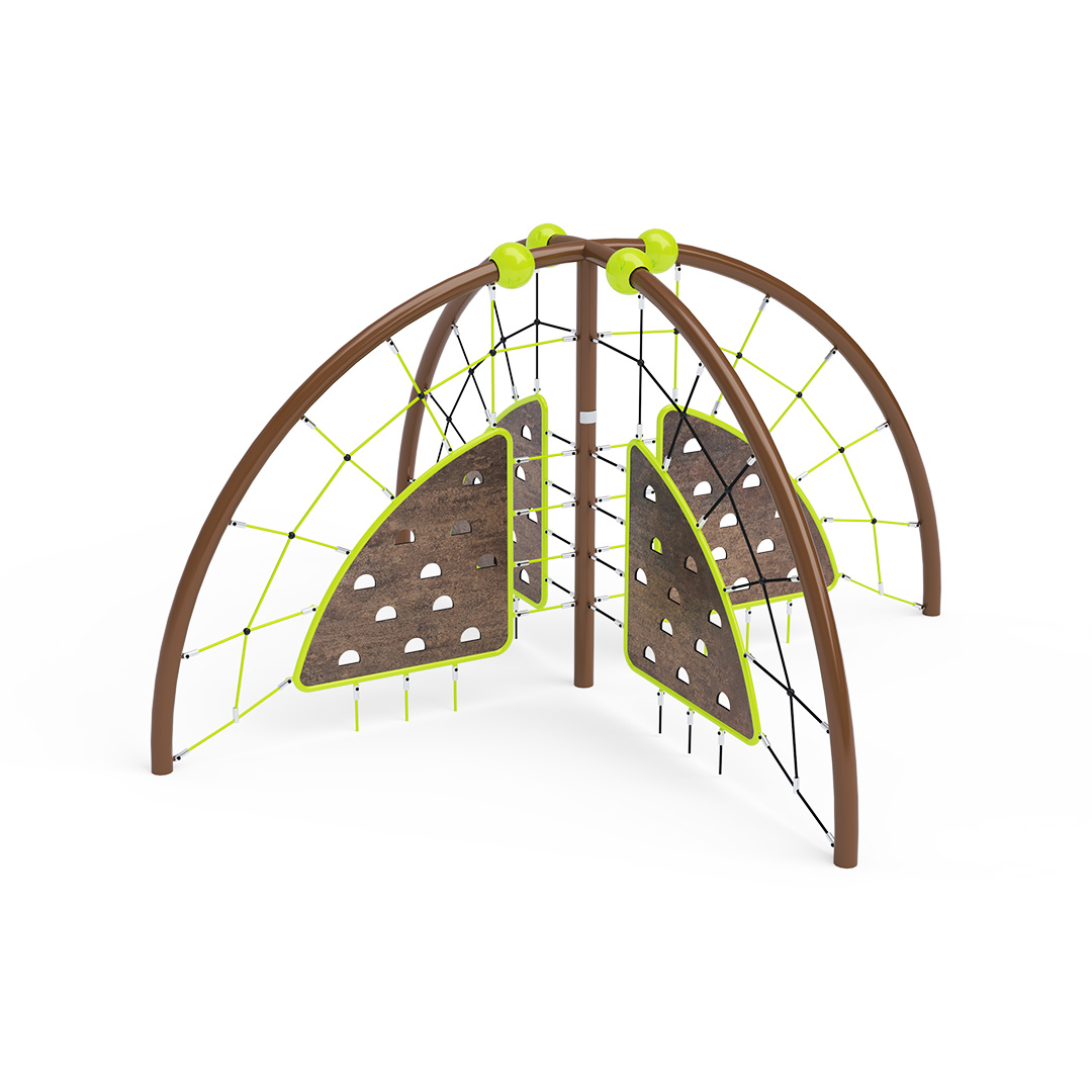 Az ívelt négyoldalú tartószerkezete horganyzott és porszórt acélból, kötélrendszere acélmagos poliészter kötélből, mászólapjai pedig HPL jelölésű magas nyomású laminált kompaktlemezből készülnek. A magas nyomású HPL lemez törhetetlen, nem mérgező, újrahasznosítható, továbbá vegyszer- és UV-álló, így nem áll fenn annak a veszélye, hogy a gyermekek megsérülnek a játszás közben. A poliészter szálakból készült acélmagos kötél magas szilárdsággal bír, és ezáltal jobban ellenáll a mechanikai igénybevételnek. Maga a poliészter számos pozitív tulajdonsággal rendelkezik. Színtartó, ellenáll a mikroorganizmusoknak, az időjárási hatásoknak (pl. eső után gyorsan szárad). Minden kötőelem rozsdamentes acélból készül, és a fokozott tartósság és biztonság érdekében műanyag kupakkal van lezárva. A használt anyagoknak köszönhetően az eszköz minimális karbantartást igényel! A játékeszközt úgy terveztük, hogy a hosszú élettartam mellett a maximális biztonságot is garantálja!