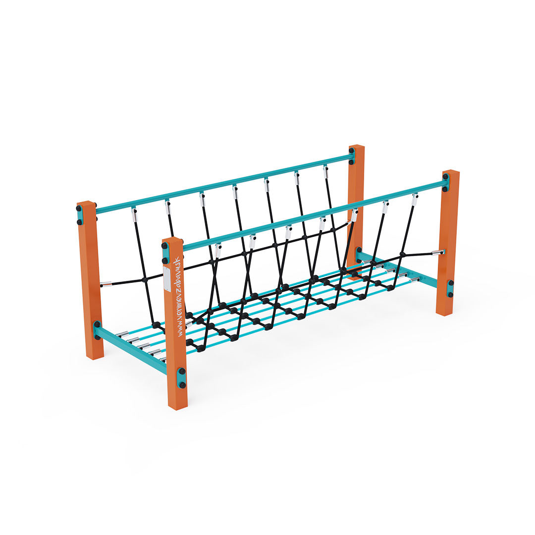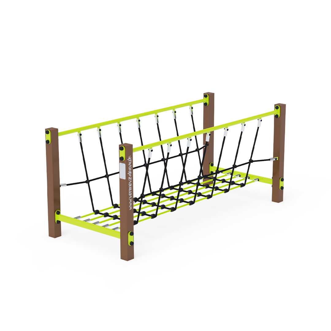 Az egyrészes kötélhíd szerkezete acélból és kötélrendszere pedig acélmagos poliészter kötélből készül. Az acél szerkezet horgany és KOMAXIT égetett porfesték felületkezelést kap. A poliészter szálakból készült acélmagos kötél magas szilárdsággal bír és ez által jobban ellenáll a mechanikai igénybevételnek. Maga a poliészter számos pozitív tulajdonsággal rendelkezik. Színtartó, ellenáll a mikroorganizmusoknak, az időjárási hatásoknak, (pl. eső után gyorsan szárad). Ezeknek az anyagoknak köszönhetően az eszköz minimális karbantartást igényel! A játékeszközt úgy terveztük, hogy a hosszú élettartam mellett a maximális biztonságot is garantálja! A kötélhíd ideális játékeszköz a kisebb gyermekek szórakoztatására! A kötélhídon a gyermekek a stabilitást és a koordinációt gyakorolhatják.