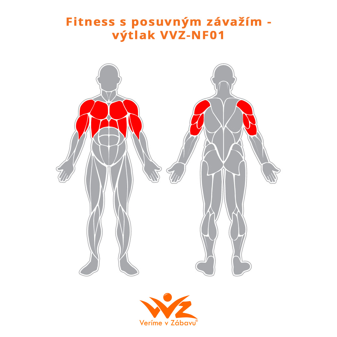 Gördülő súlyokkal ellátott fitneszgép, amely a felső végtagok, a vállak és a mellizmok edzésére szolgál. Akár 100 kg-os tolósúlyokat is tartalmaz, így nemcsak a kezdők, hanem a tapasztalt sportolók számára is alkalmas.